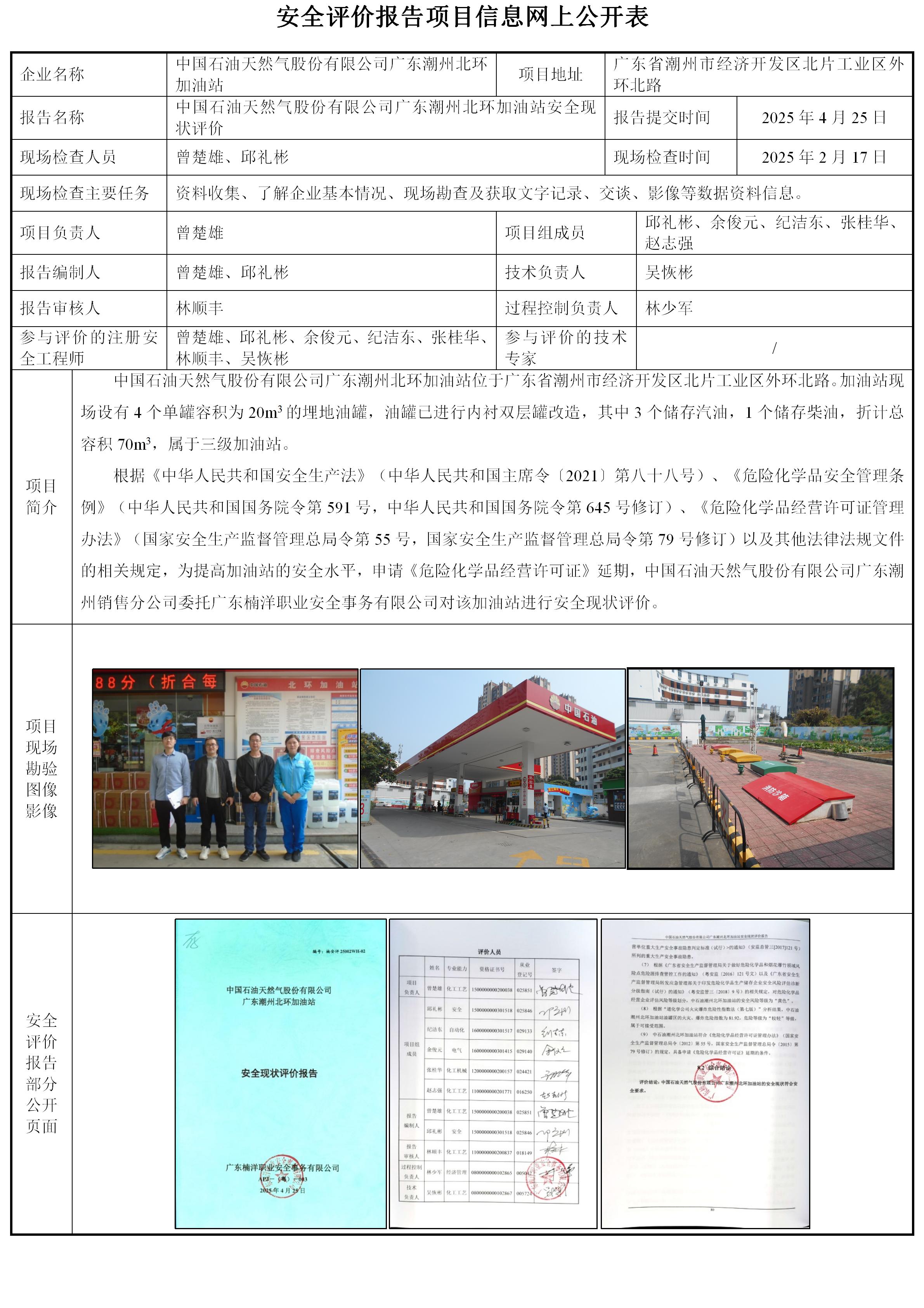 中国石油天然气股份有限公司广东潮州北环加油站安全现状评价