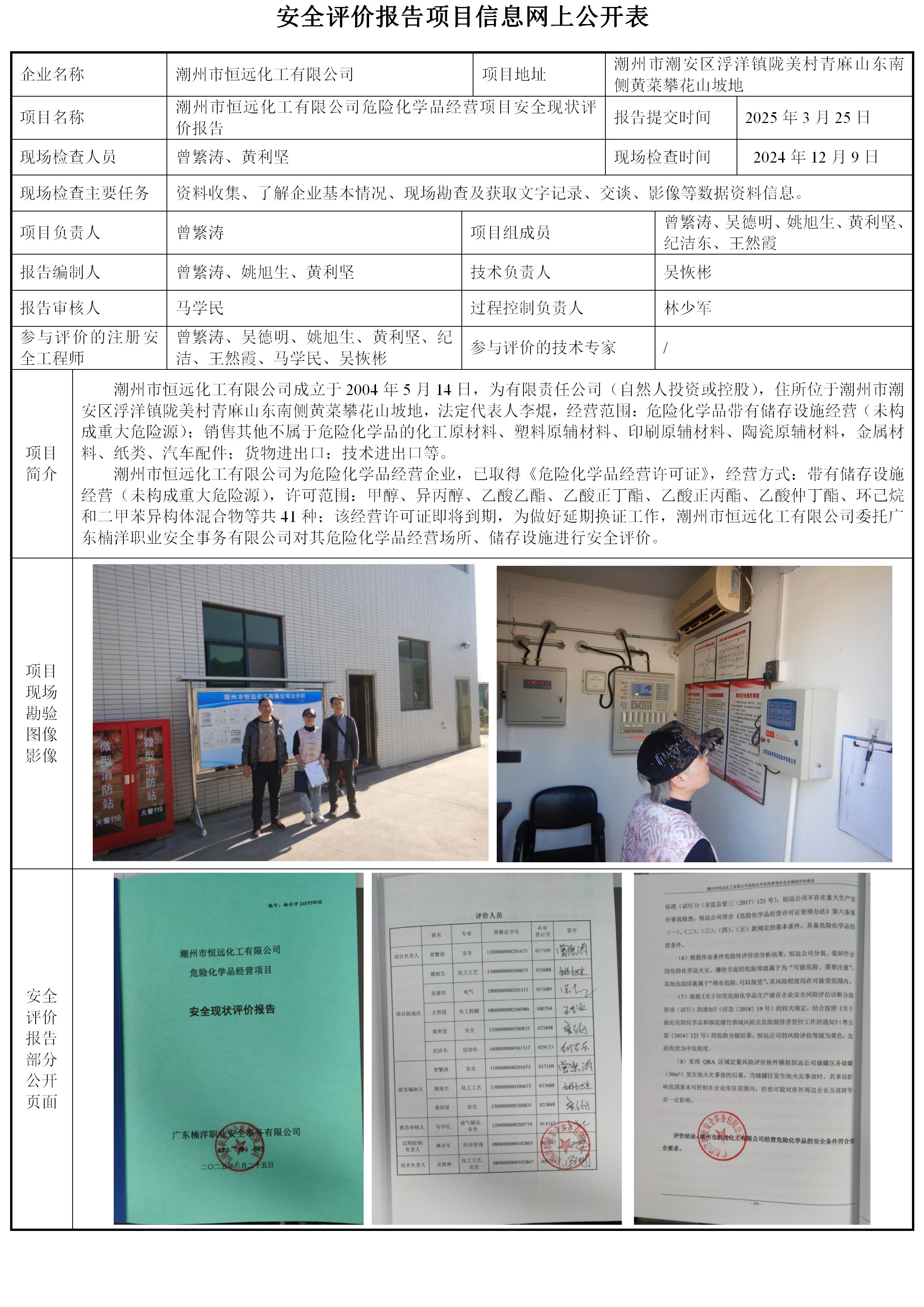 潮州市恒远化工有限公司危险化学品经营项目安全现状评价