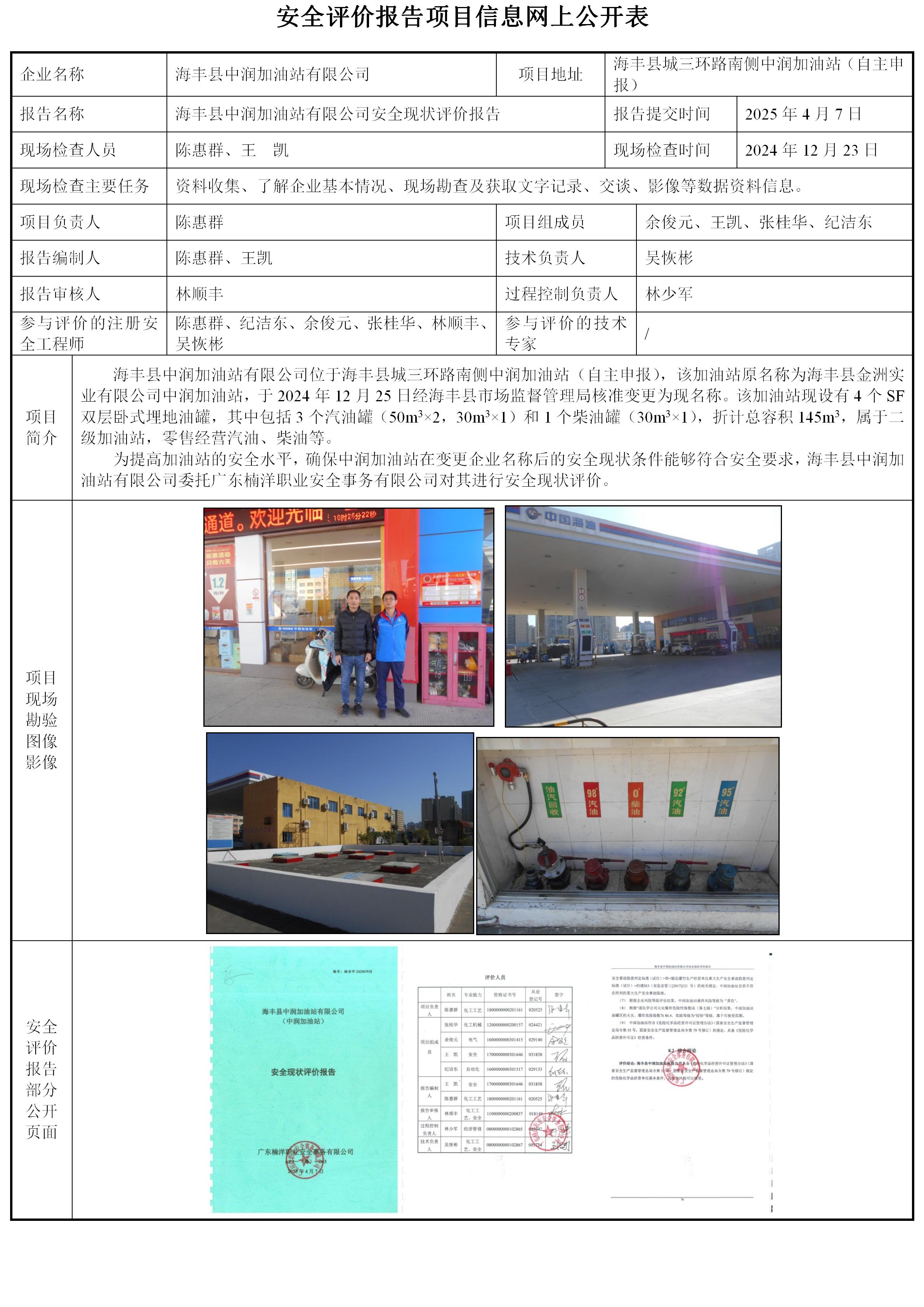 海丰县中润加油站有限公司(中润加油站)安全现状评价