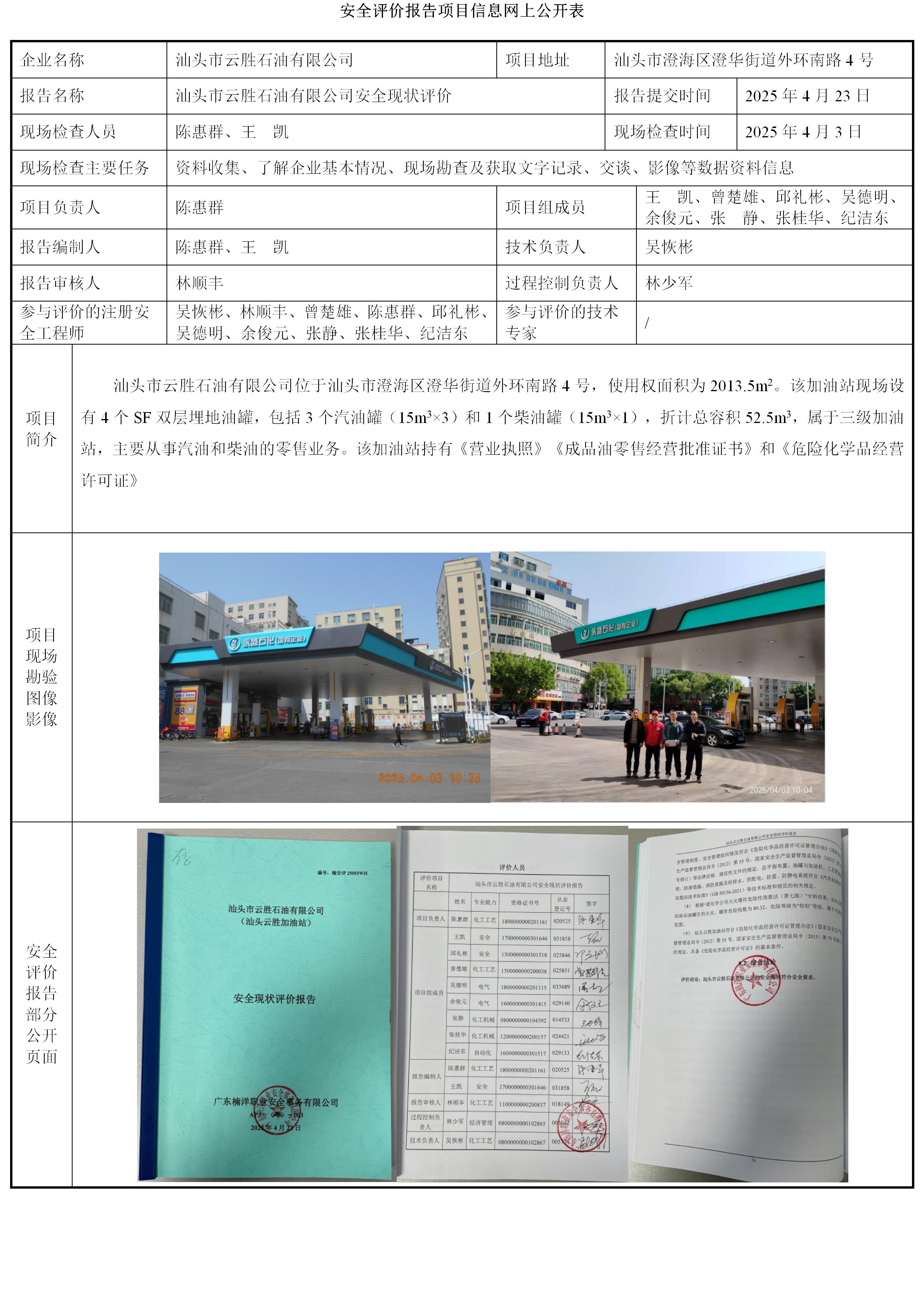 汕头市云胜石油有限公司(汕头云胜加油站)安全现状评价