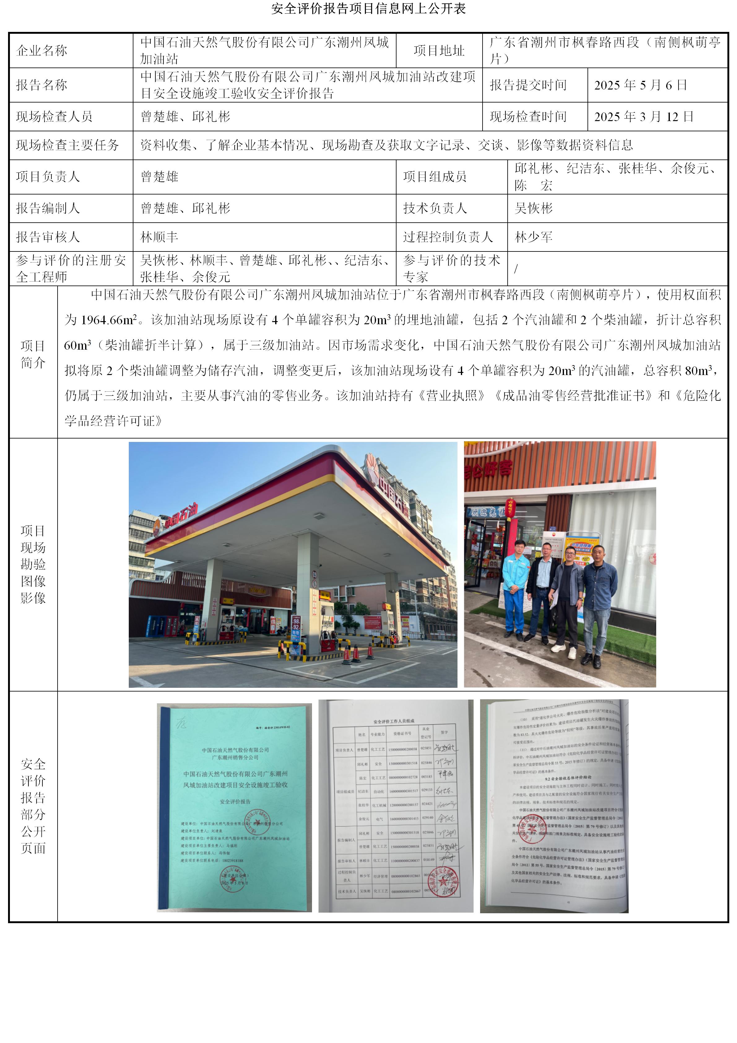 中国石油天然气股份有限公司广东潮州销售分公司中国石油天然气股份有限公司广东潮州凤城加油站改建项目安全设施竣工验收安全评价