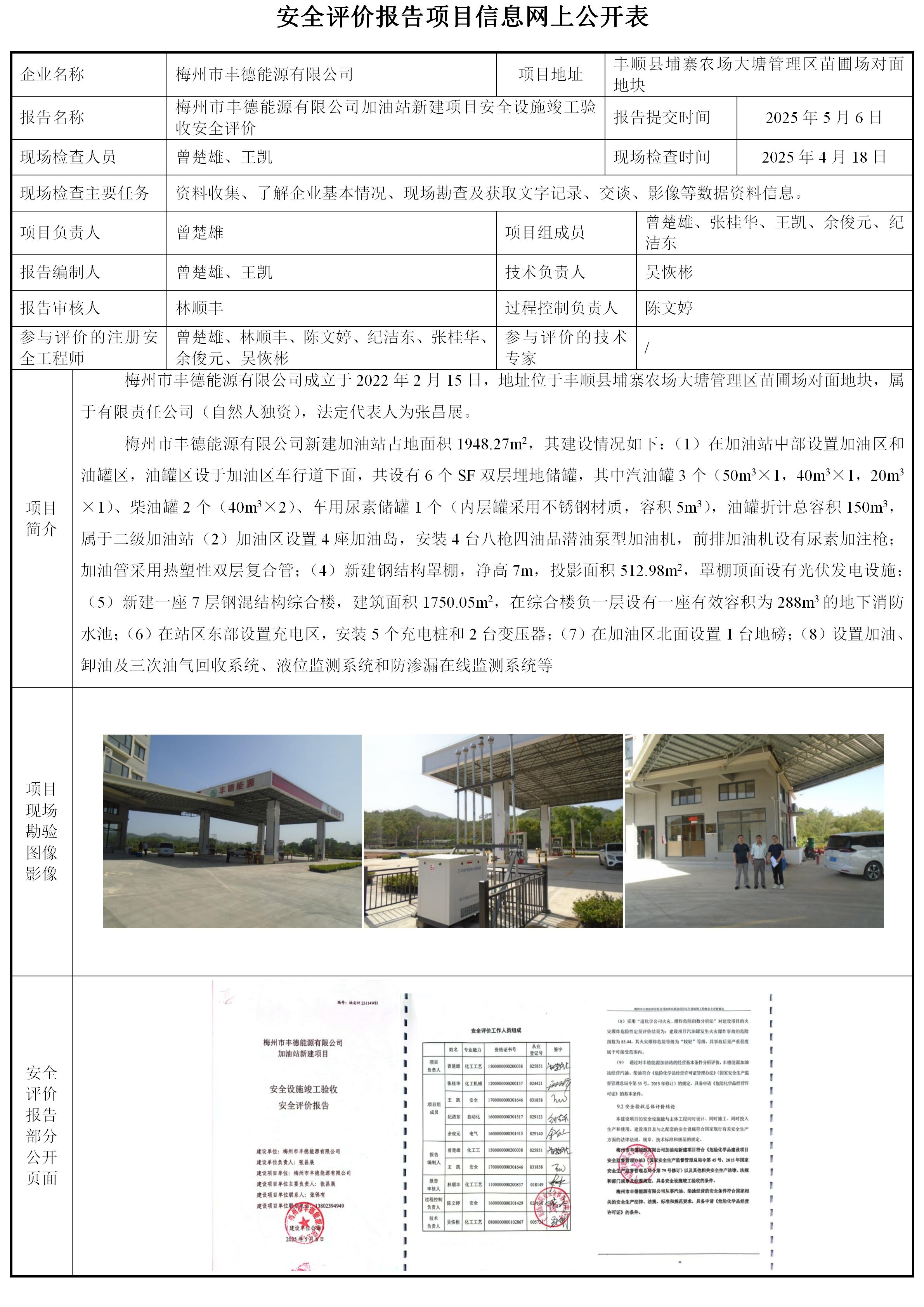 梅州市丰德能源有限公司加油站新建项目安全设施竣工验收安全评价