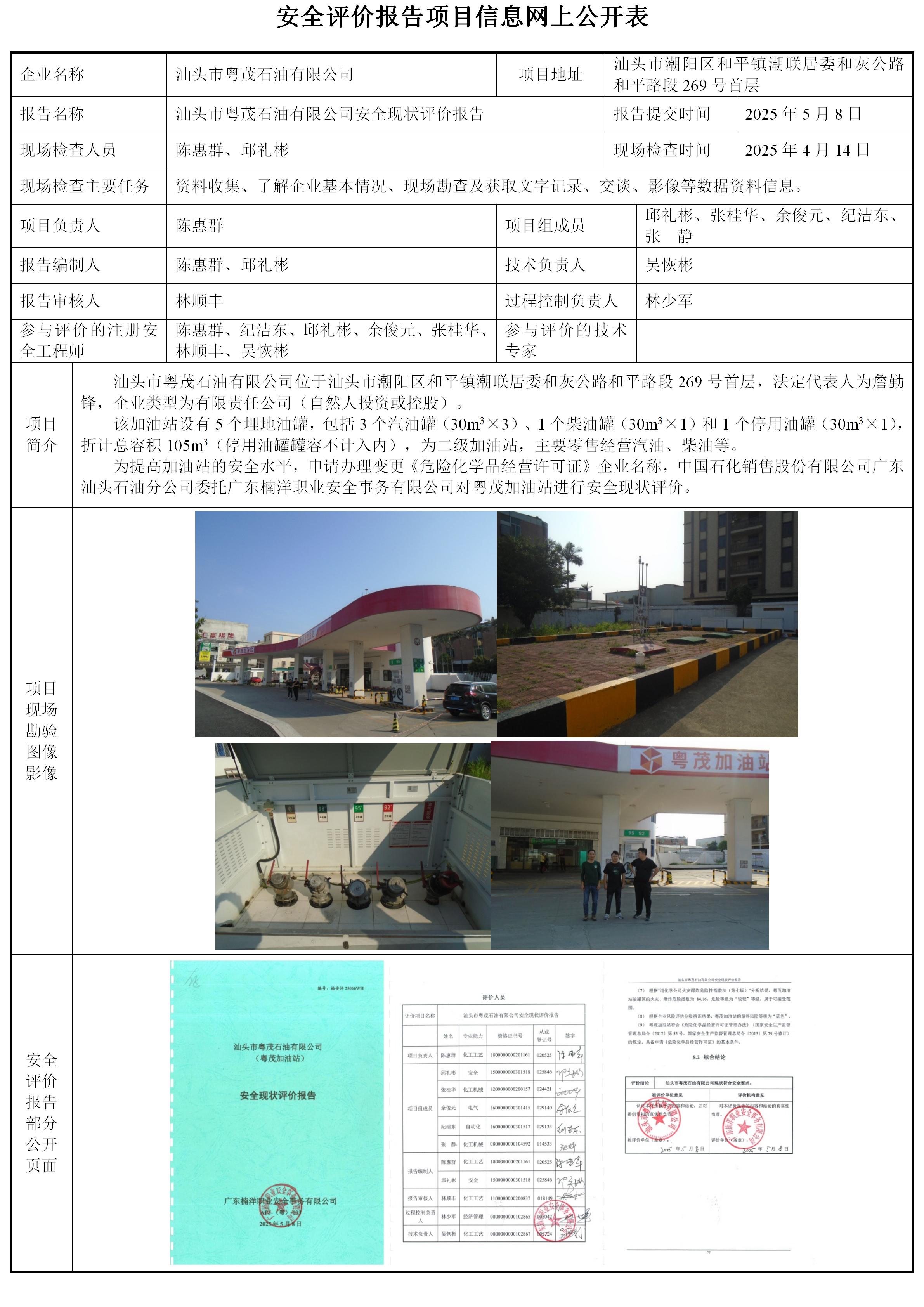 汕头市粤茂石油有限公司(粤茂加油站)安全现状评价