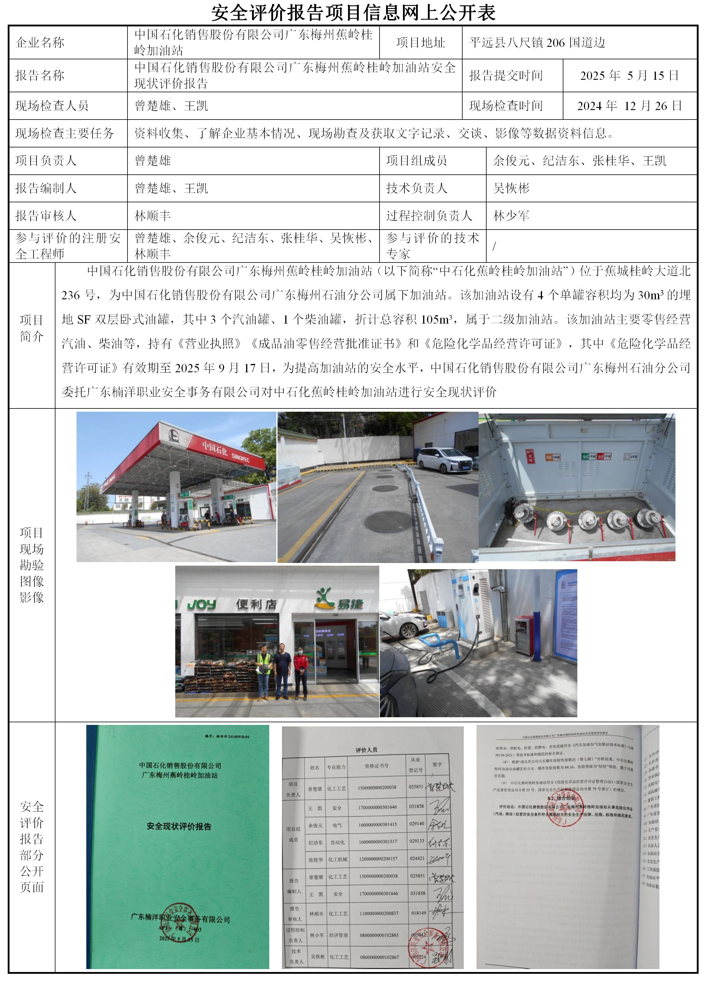 中国石化销售股份有限公司广东梅州蕉岭桂岭加油站安全现状评价