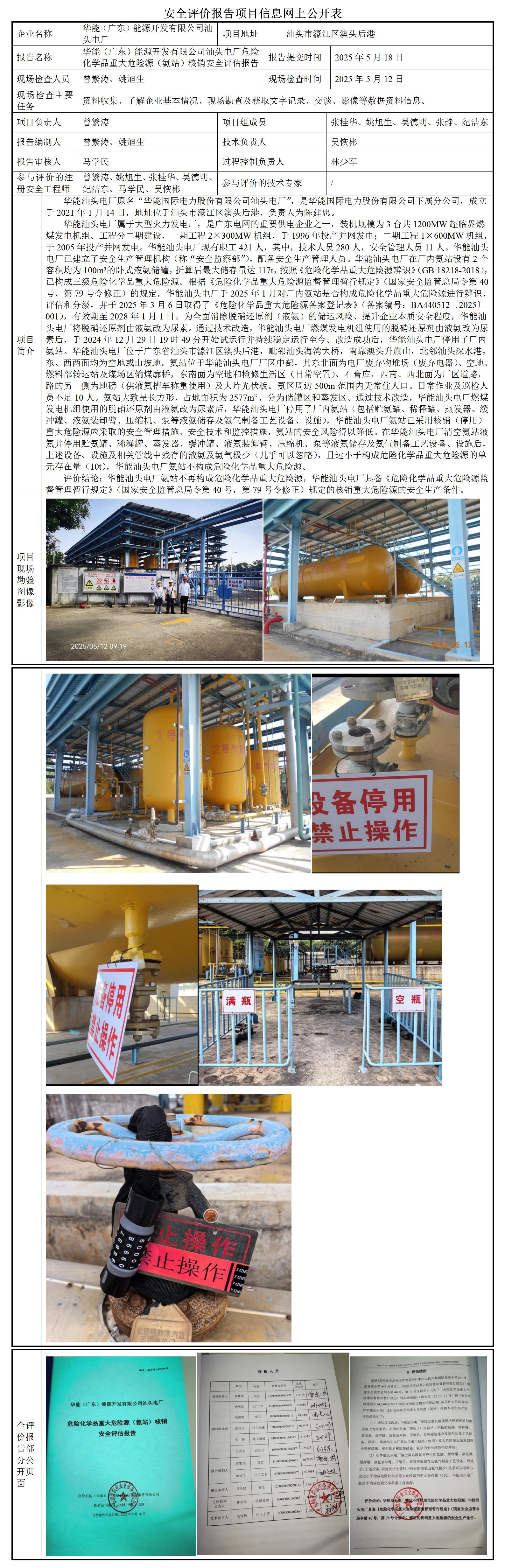 华能(广东)能源开发有限公司汕头电厂危险化学品重大危险源(氨站)核销安全评估