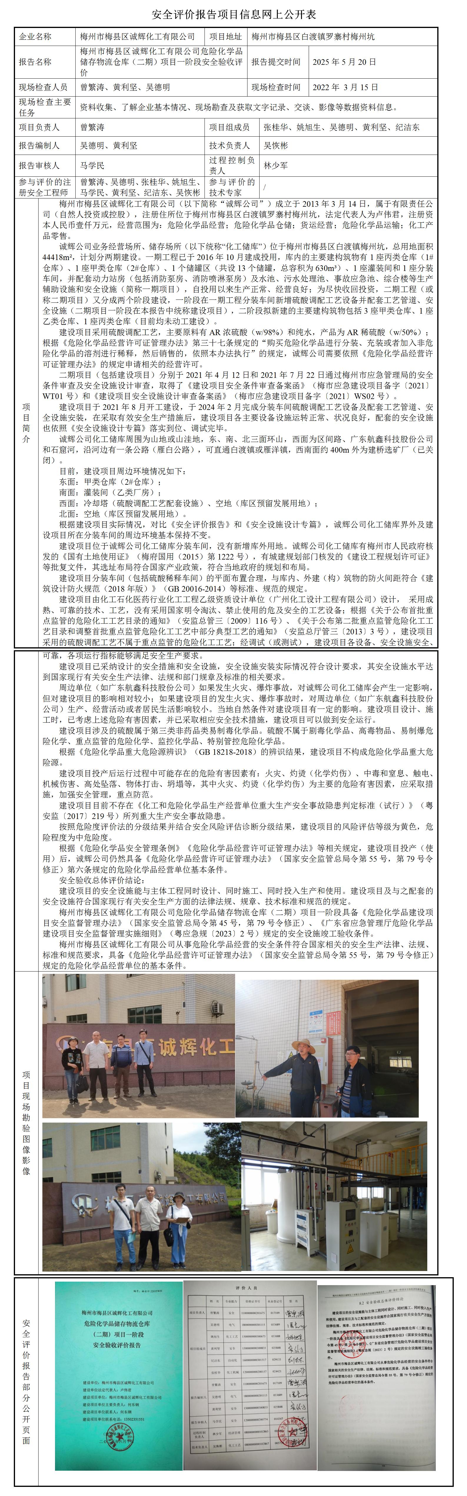 梅州市梅县区诚辉化工有限公司危险化学品储存物流仓库(二期)项目一阶段安全验收评价