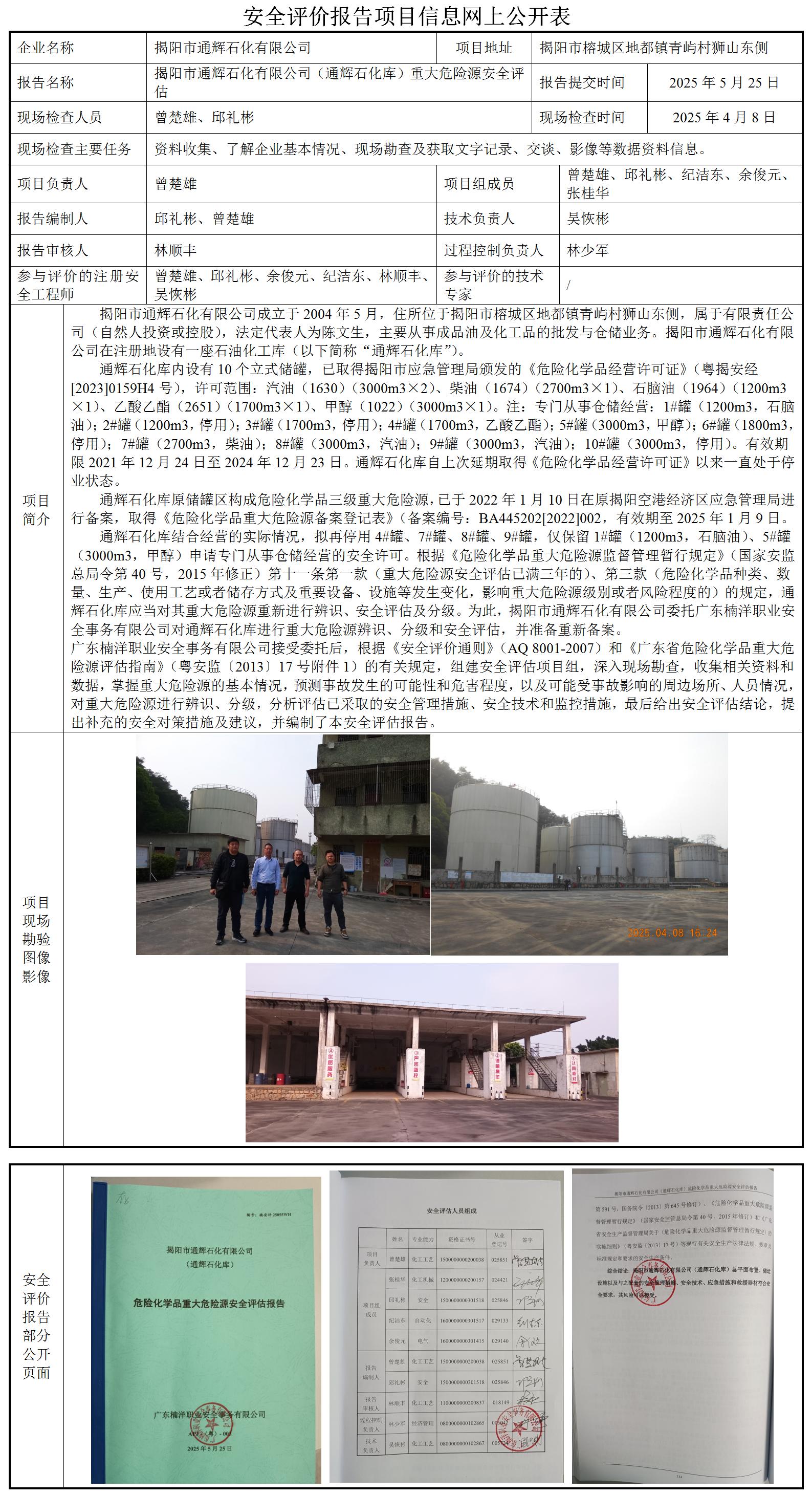 揭阳市通辉石化有限公司(通辉石化库)危险化学品重大危险源安全评估