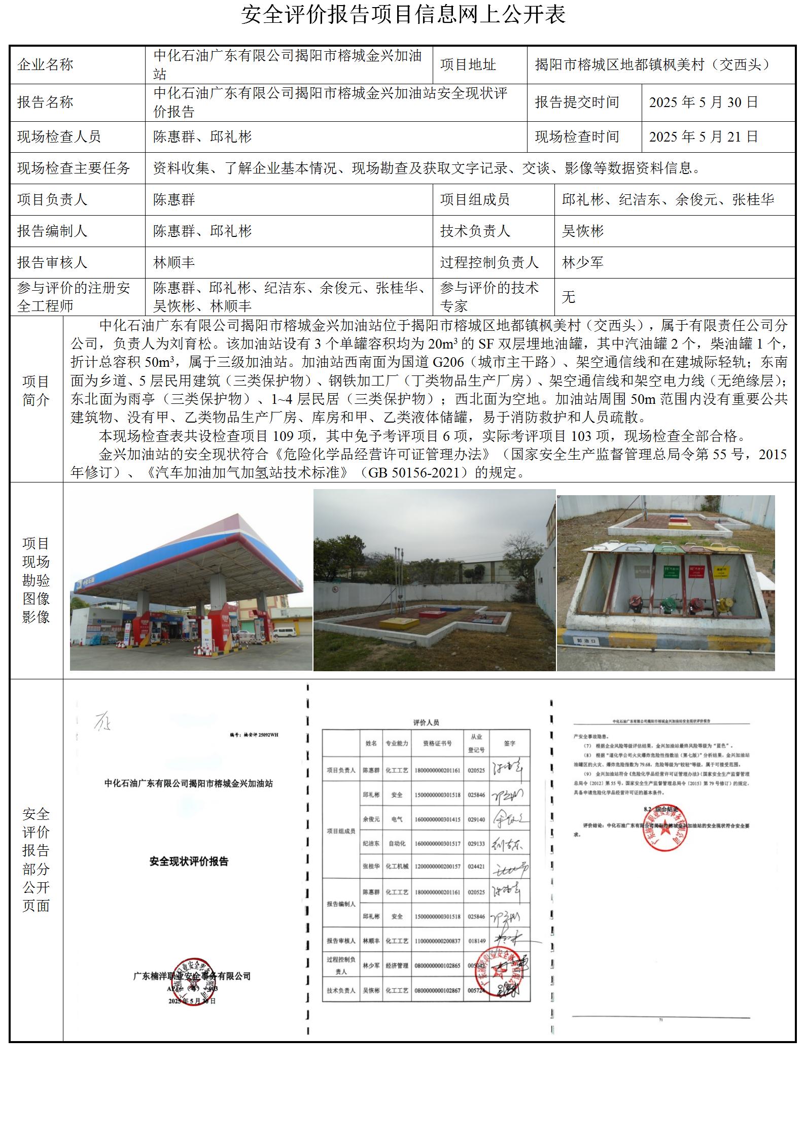 中化石油广东有限公司揭阳市榕城金兴加油站安全现状评价