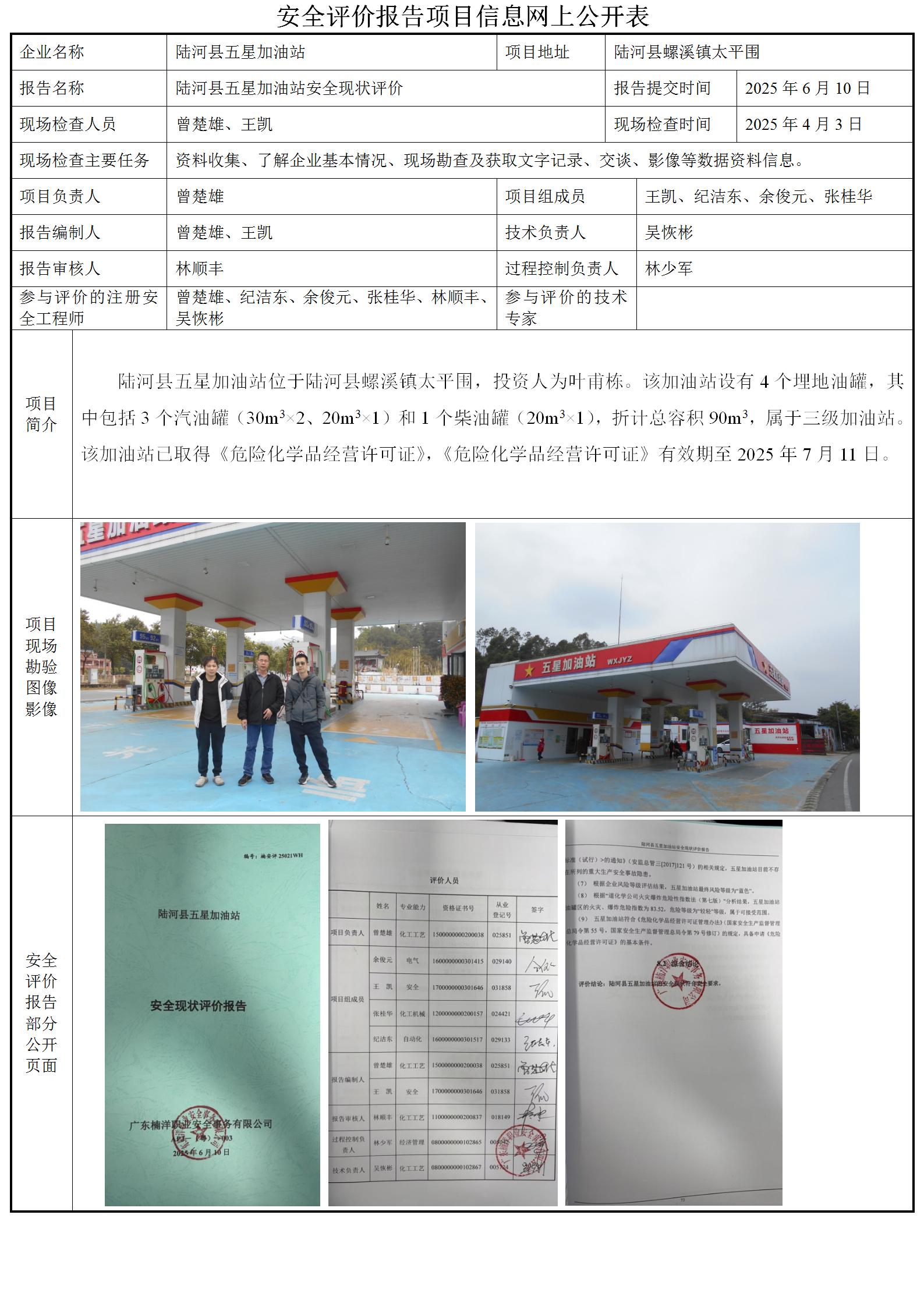 陆河县五星加油站安全现状评价