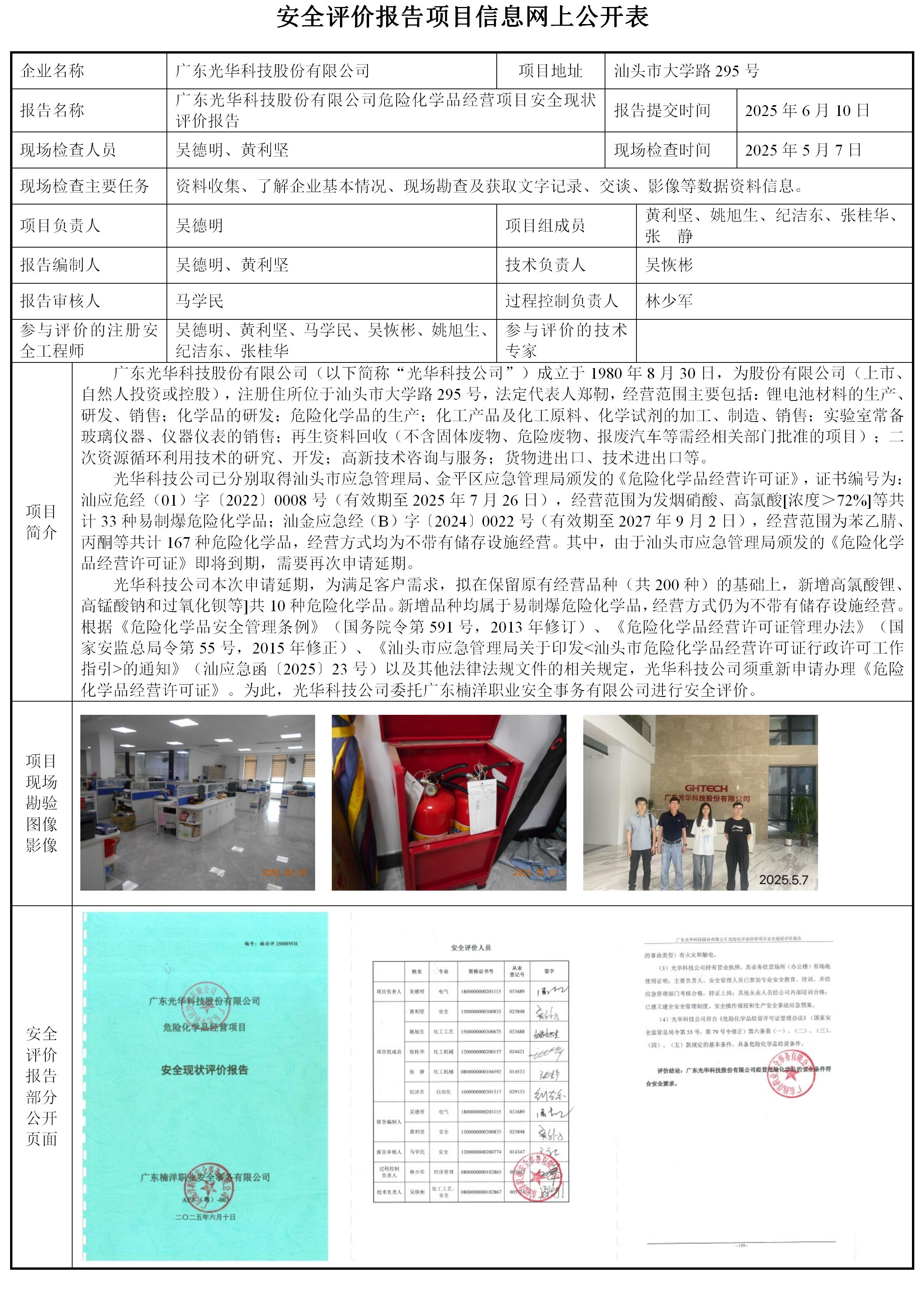 广东光华科技股份有限公司危险化学品经营项目安全现状评价
