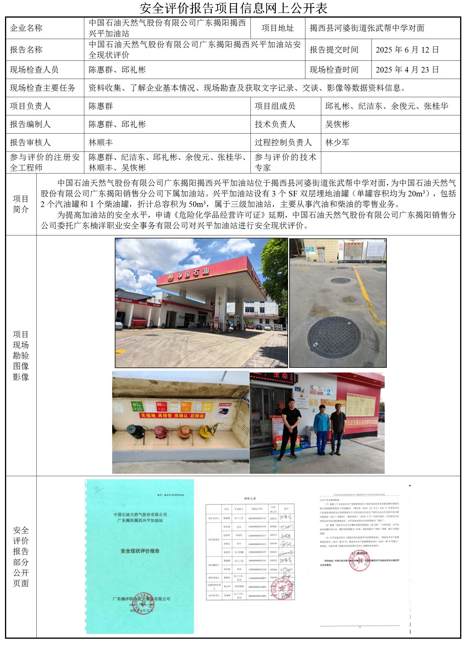 中国石油天然气股份有限公司广东揭阳揭西兴平加油站安全现状评价