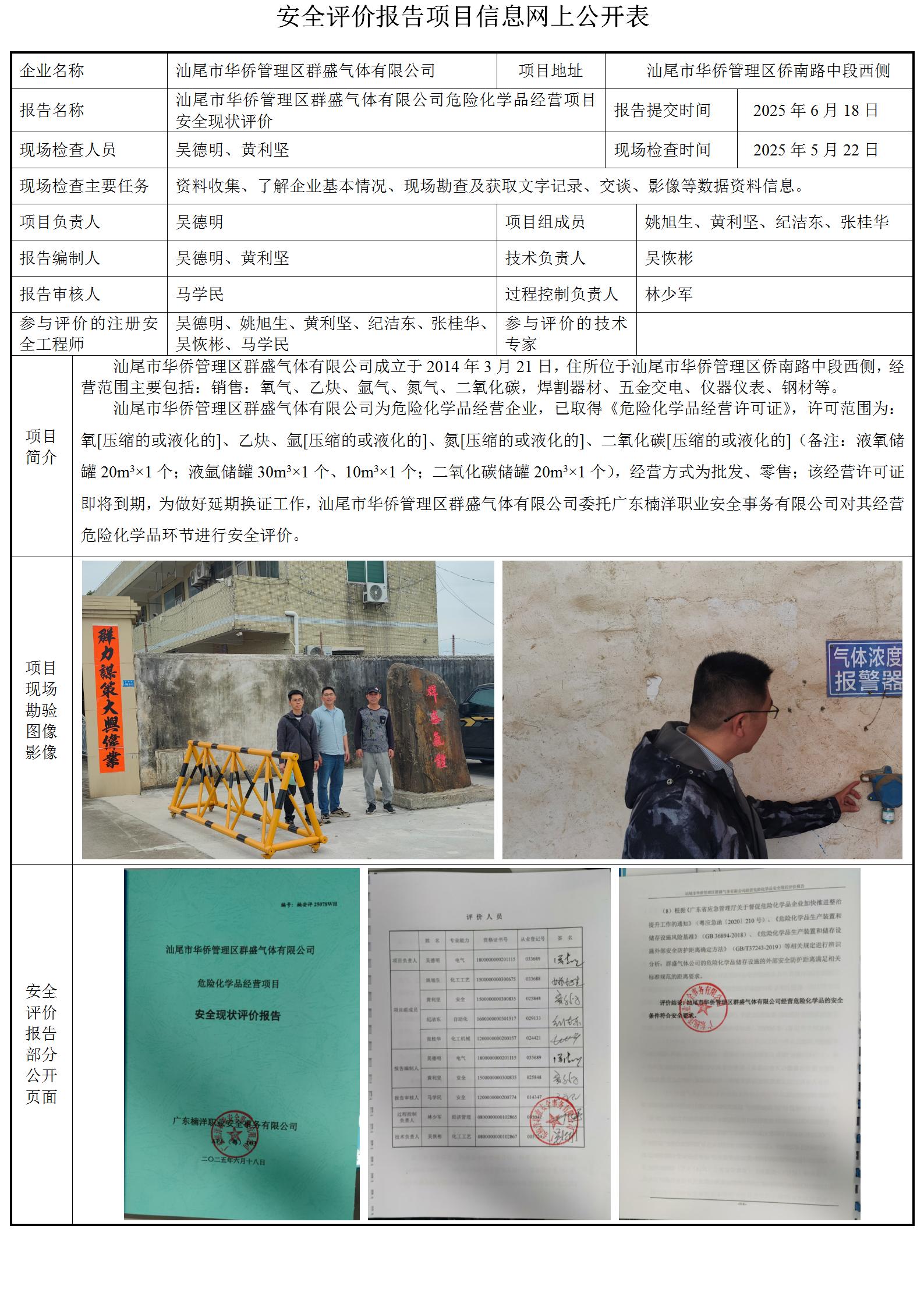 汕尾市华侨管理区群盛气体有限公司危险化学品经营项目安全现状评价