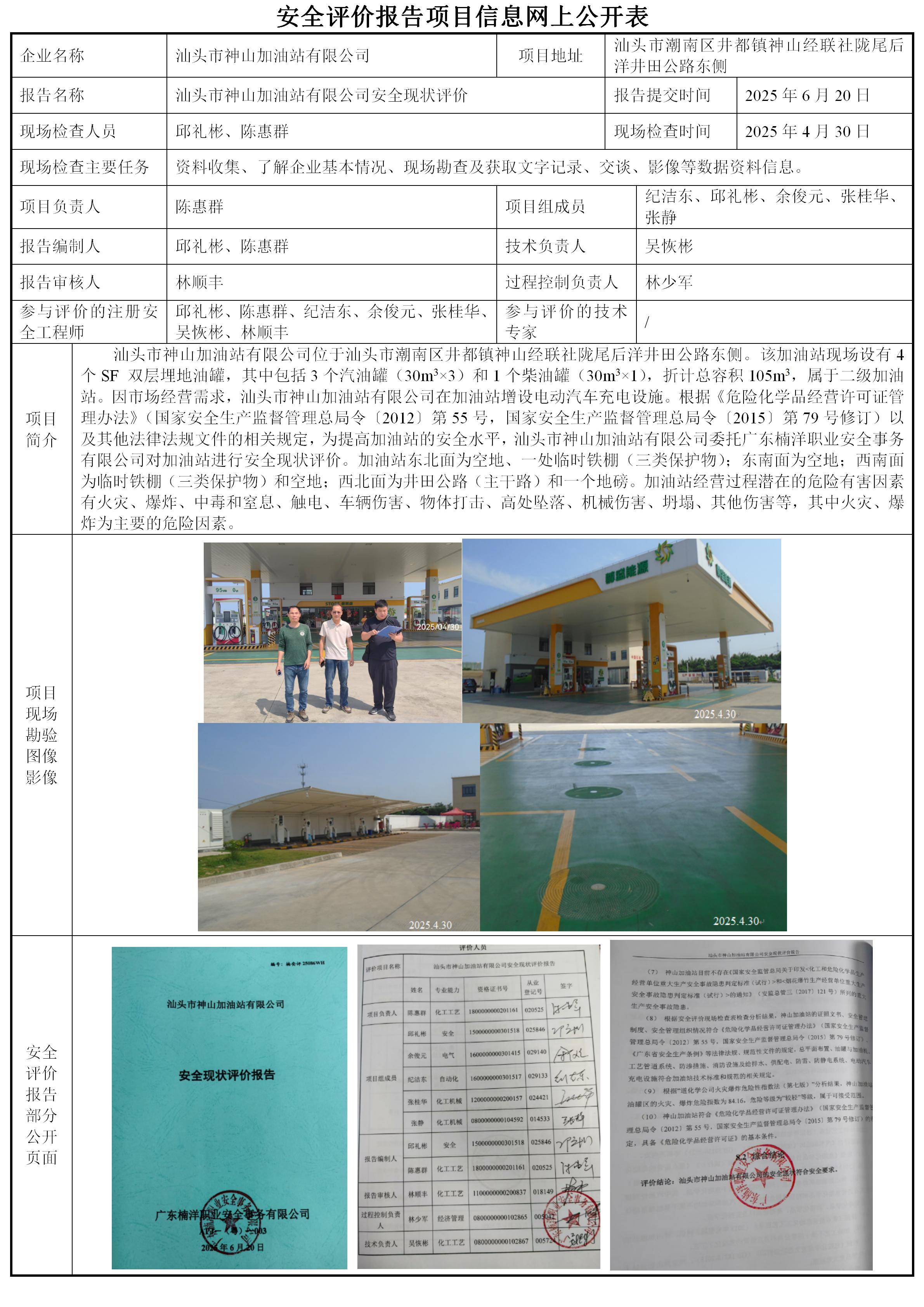 汕头市神山加油站有限公司安全现状评价