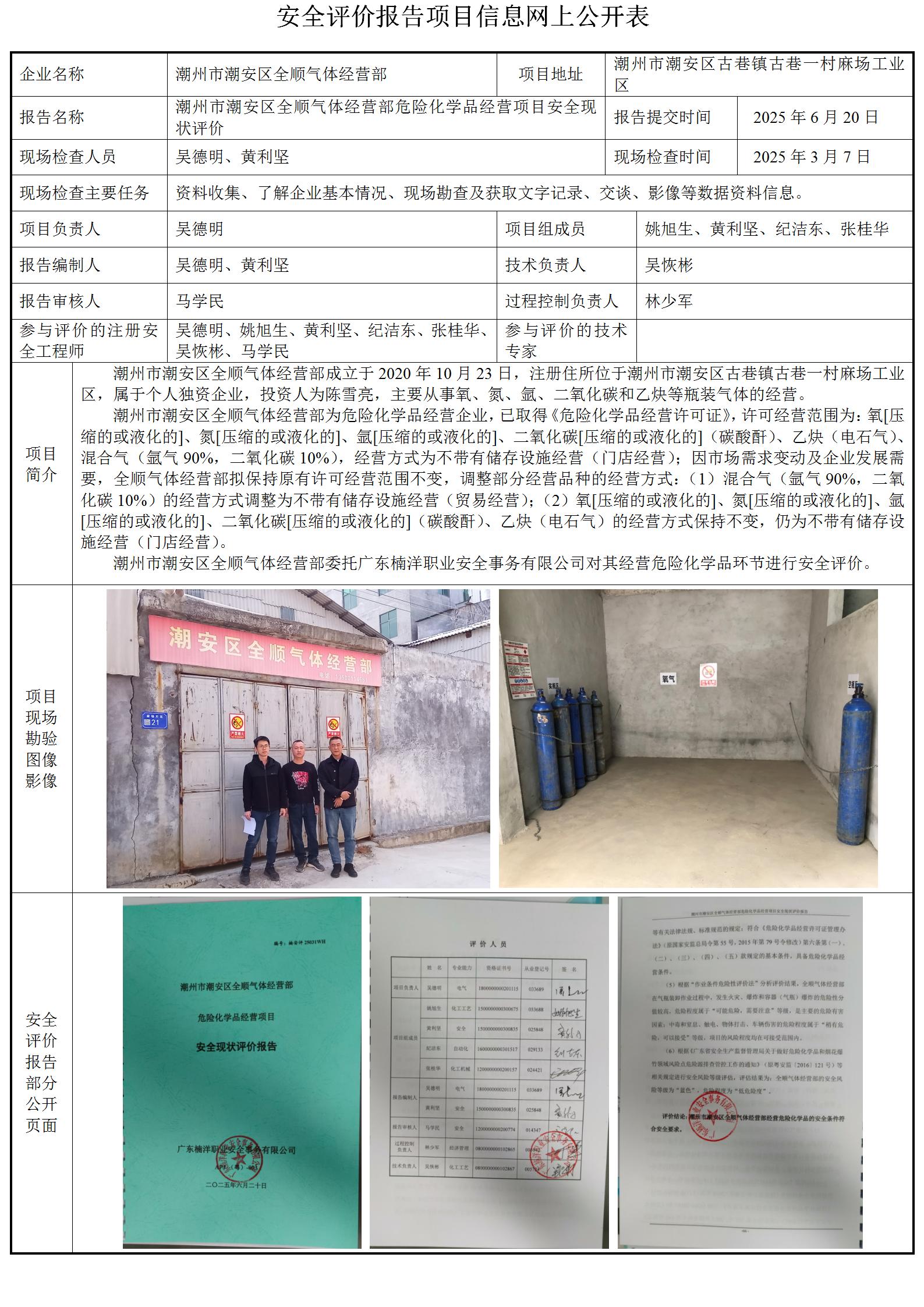 潮州市潮安区全顺气体经营部危险化学品经营项目安全现状评价