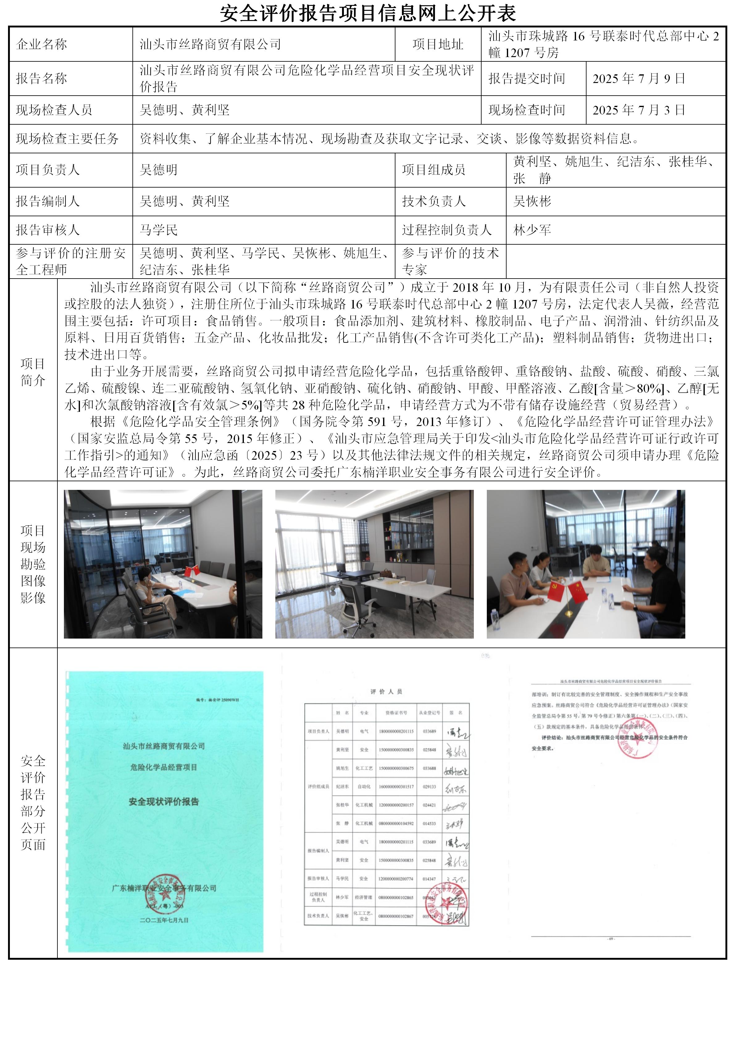 汕头市丝路商贸有限公司危险化学品经营项目安全现状评价
