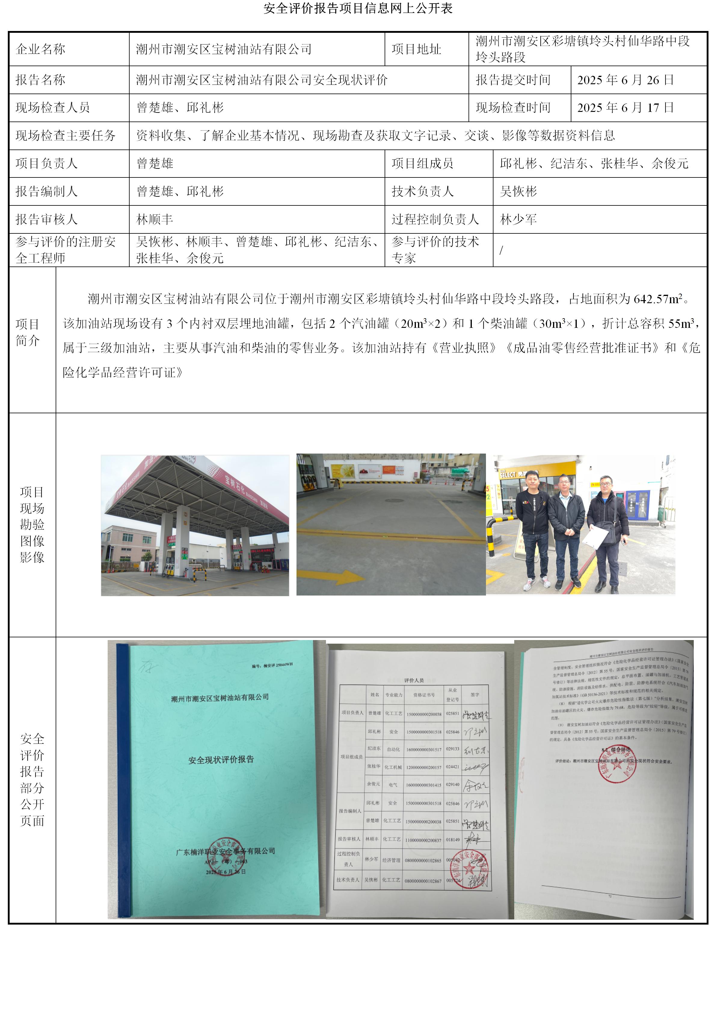 潮州市潮安区宝树油站有限公司安全现状评价