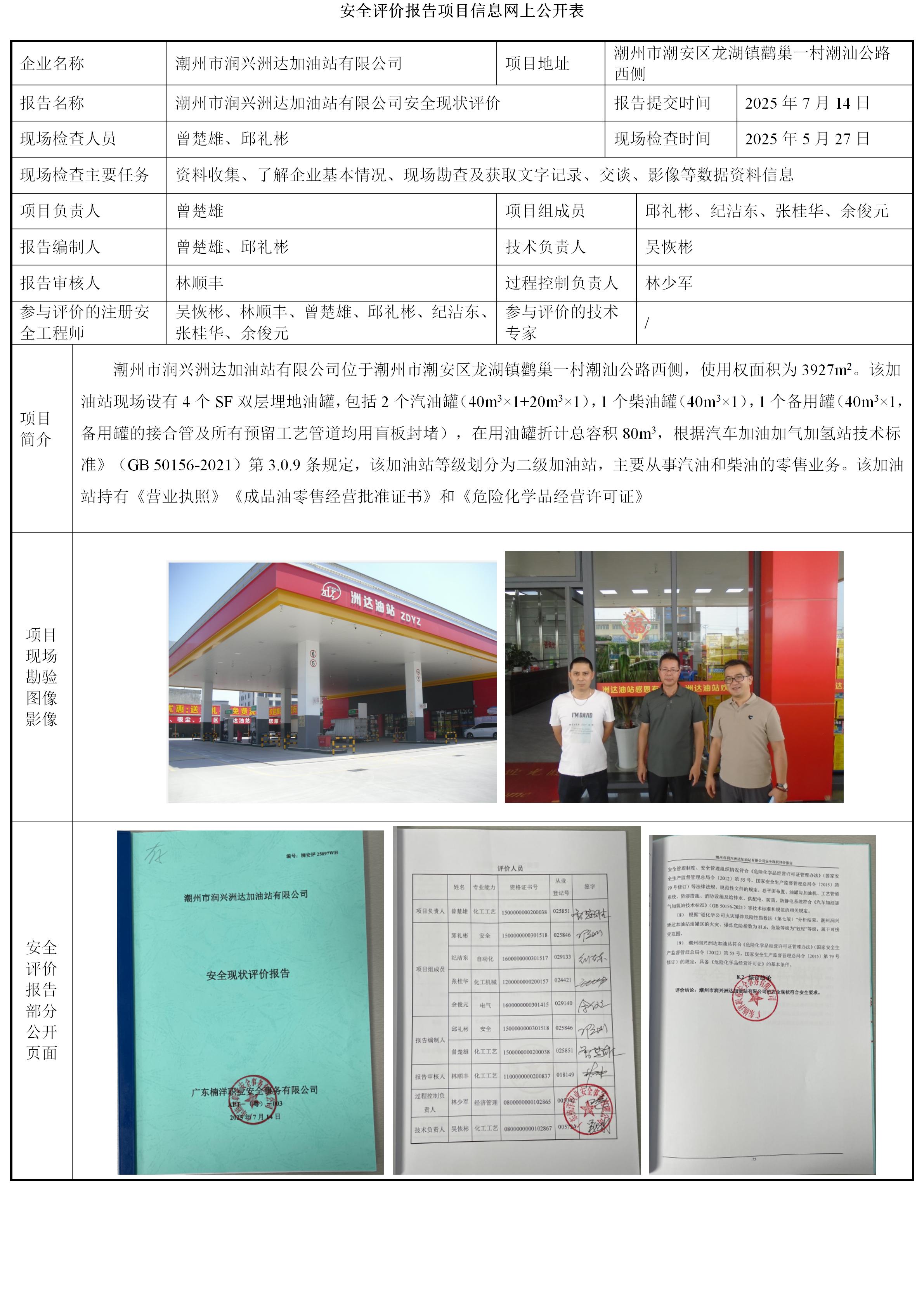 中国石化销售股份有限公司广东潮州潮安佳达加油站安全现状评价