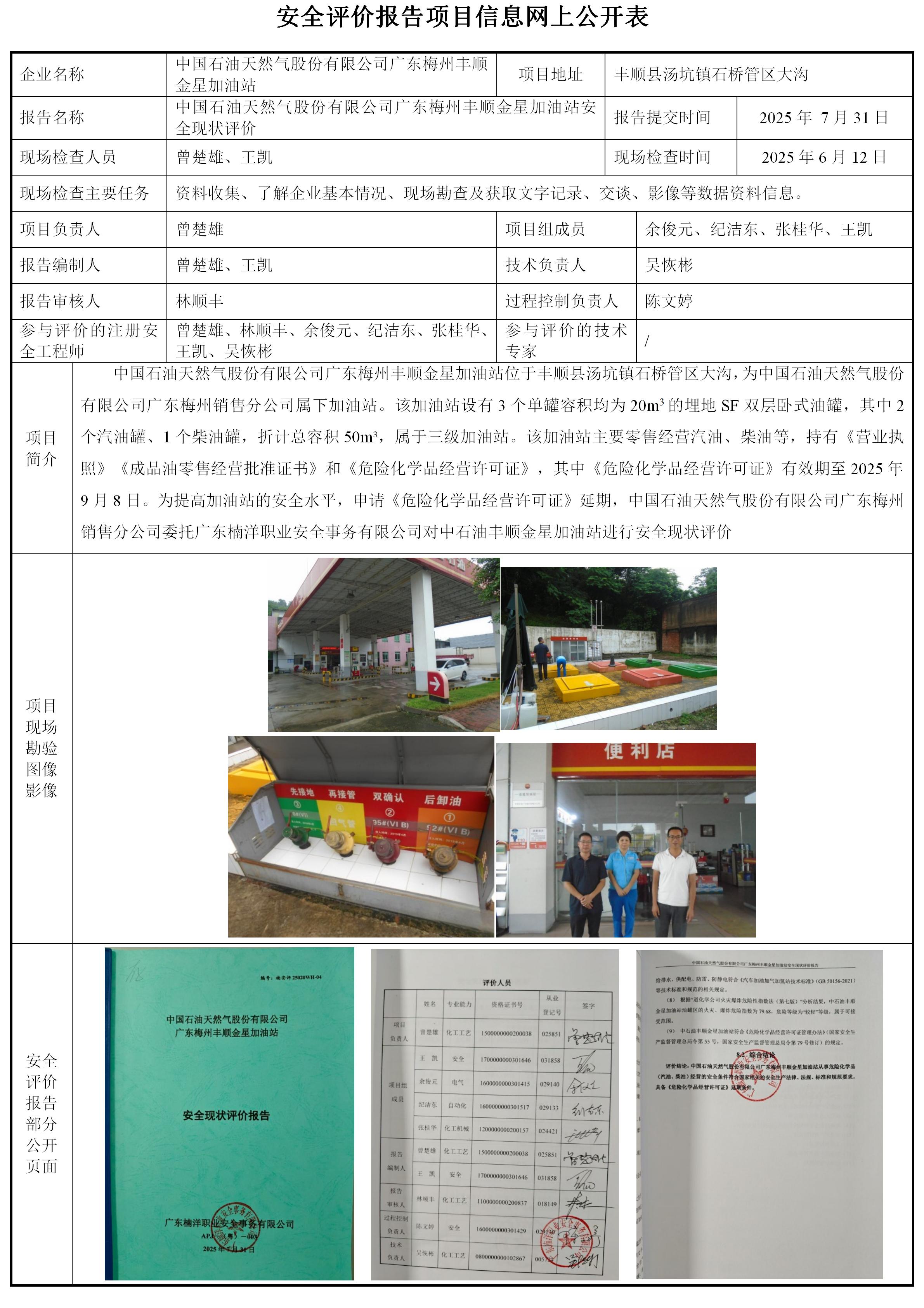 中国石油天然气股份有限公司广东梅州丰顺金星加油站安全现状评价