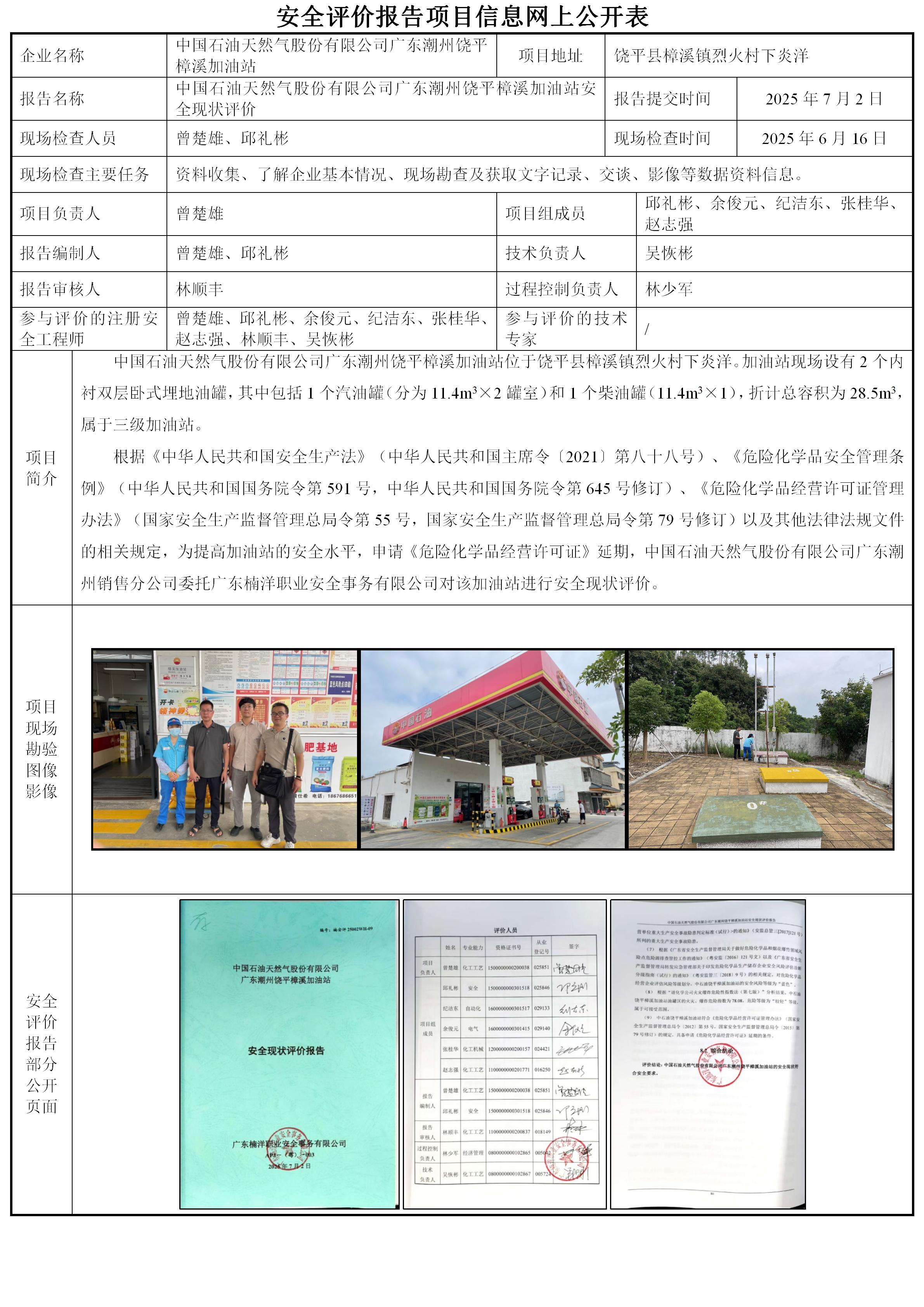 中国石油天然气股份有限公司广东潮州饶平樟溪加油站安全现状评价