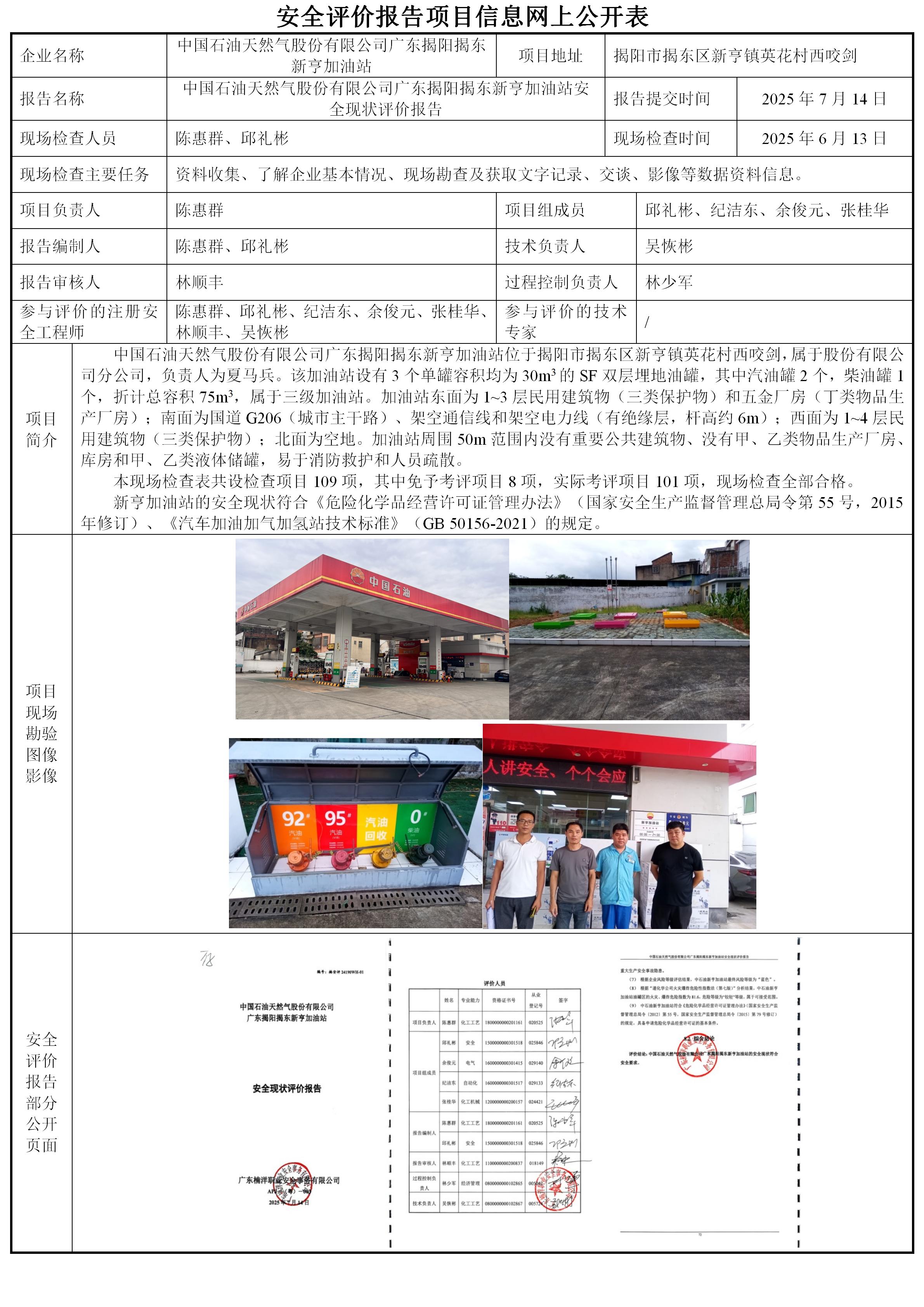 中国石油天然气股份有限公司广东揭阳揭东新亨加油站安全现状评价