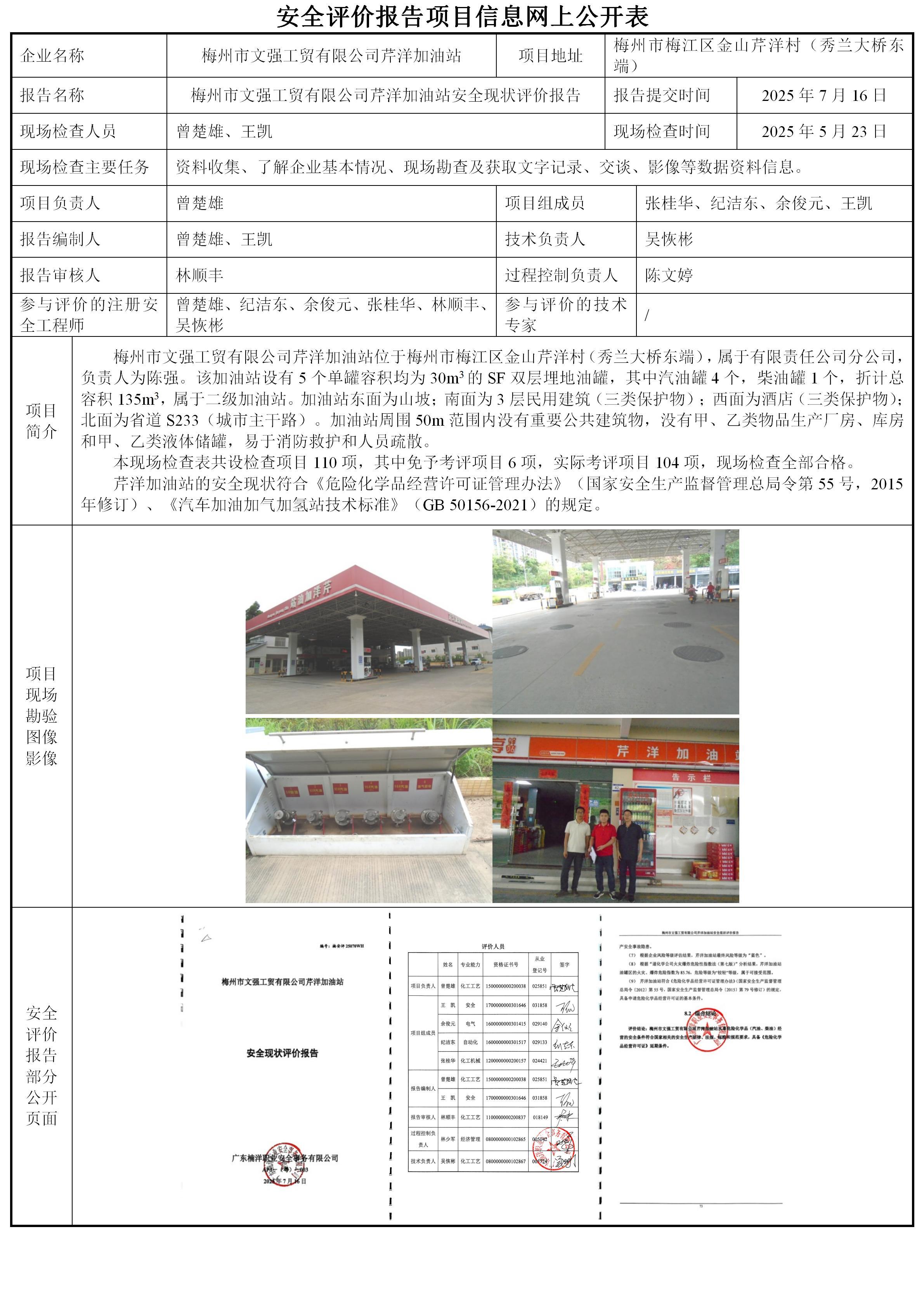 梅州市文强工贸有限公司芹洋加油站安全现状评价