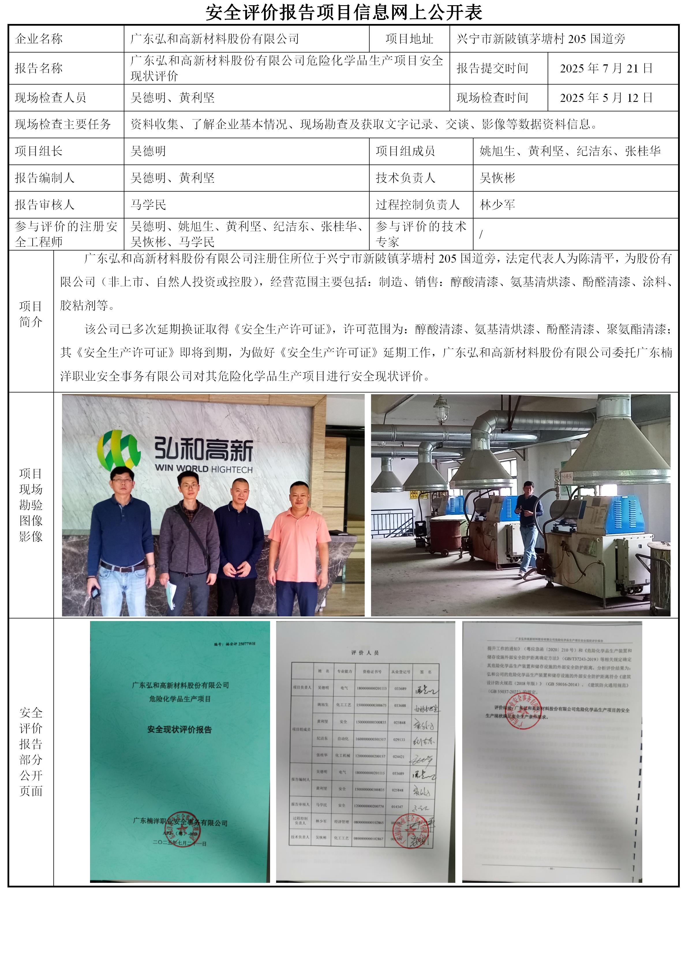 广东弘和高新材料股份有限公司危险化学品生产项目安全现状评价