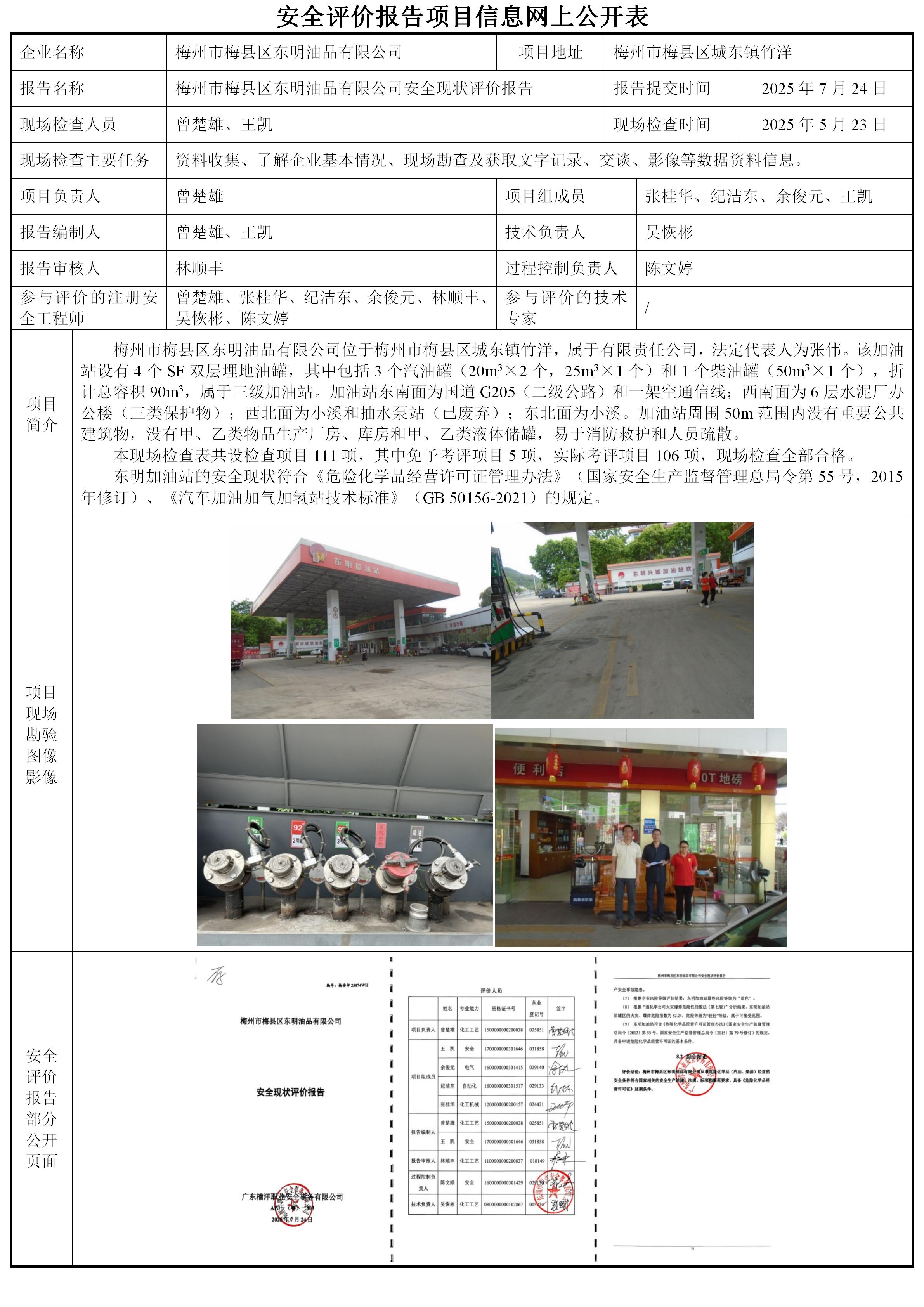 梅州市梅县区东明油品有限公司安全现状评价