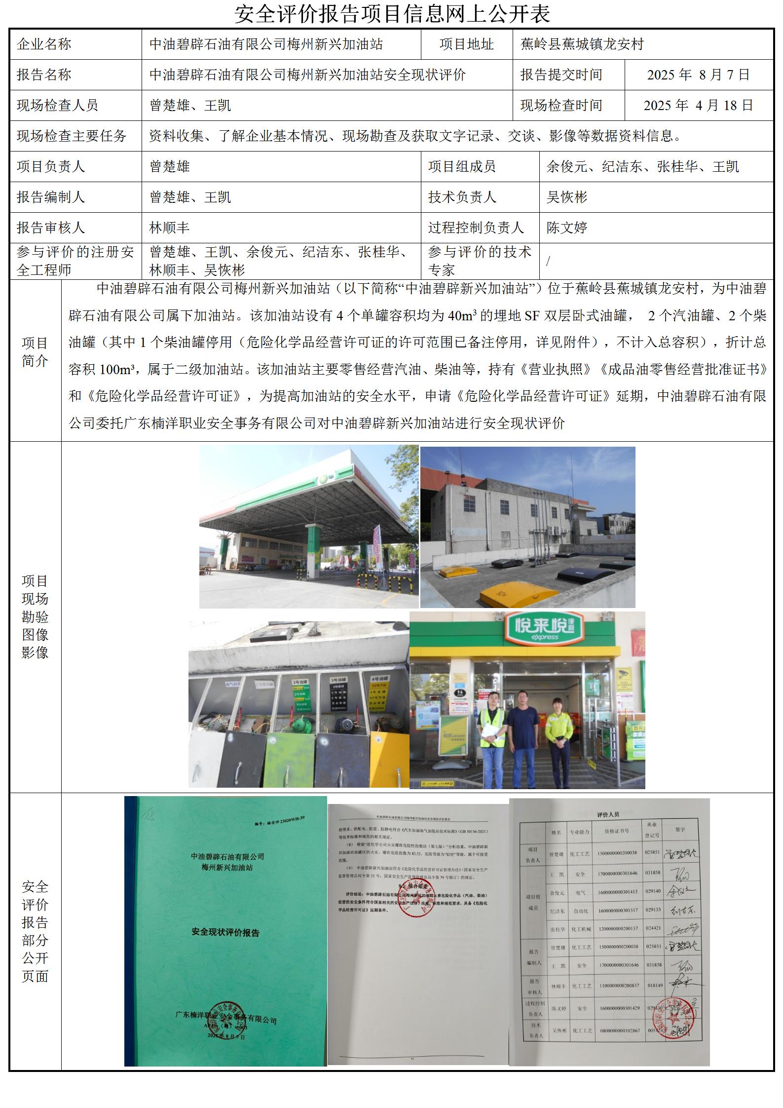 中油碧辟石油有限公司梅州新兴加油站安全现状评价