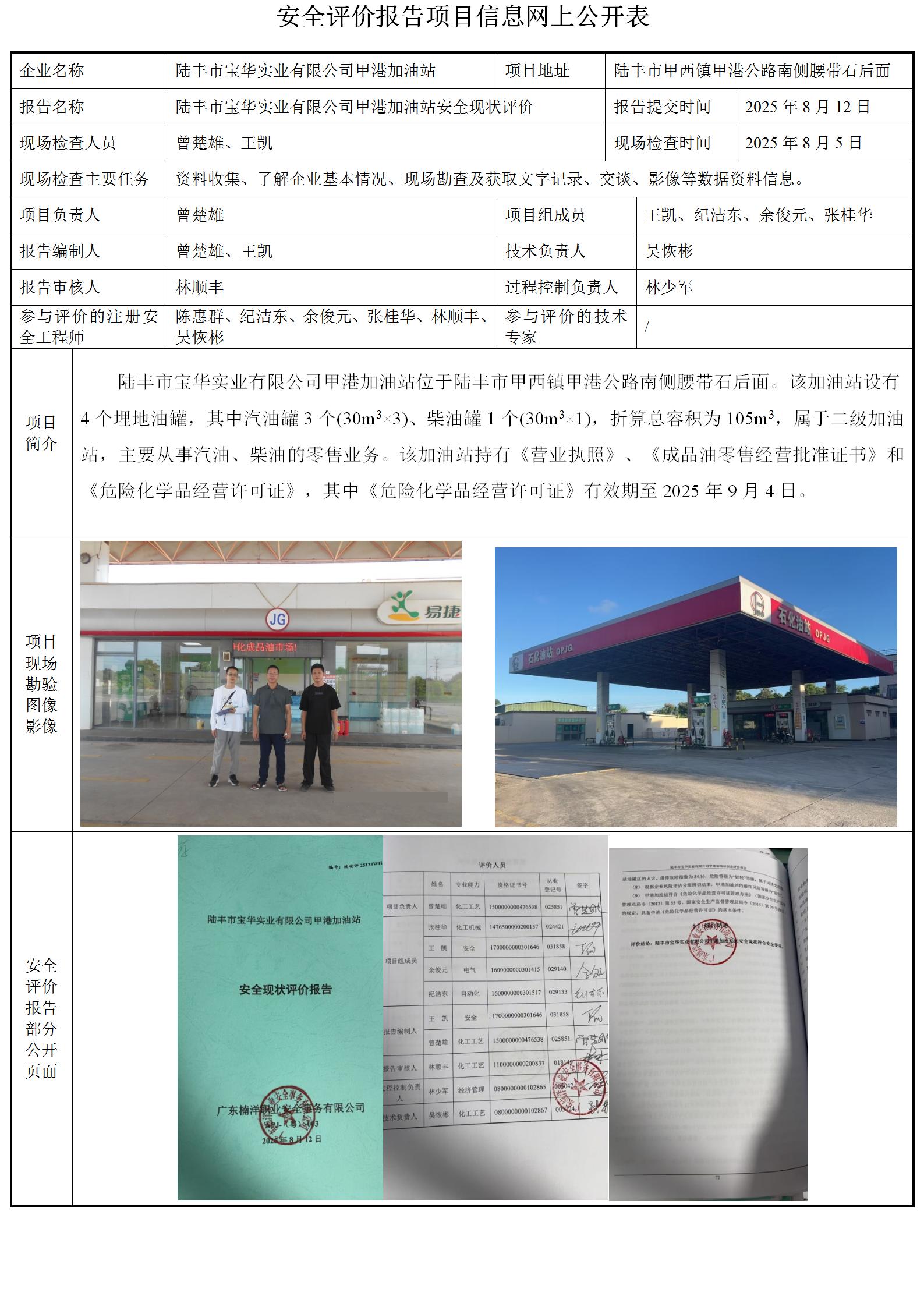 陆丰市宝华实业有限公司甲港加油站安全现状评价