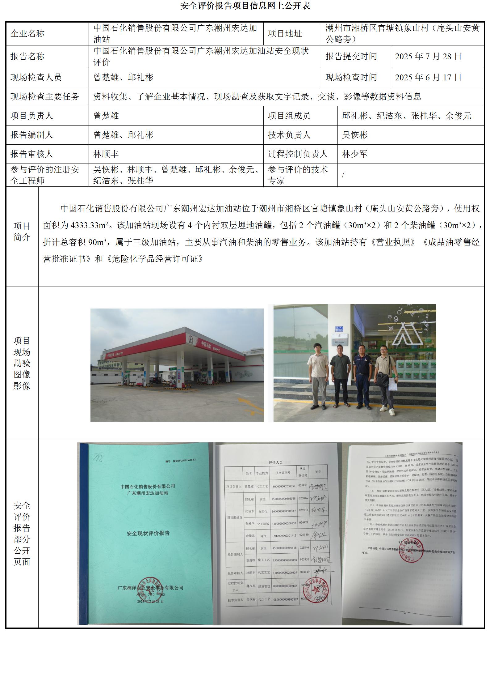 中国石化销售股份有限公司广东潮州宏达加油站安全现状评价