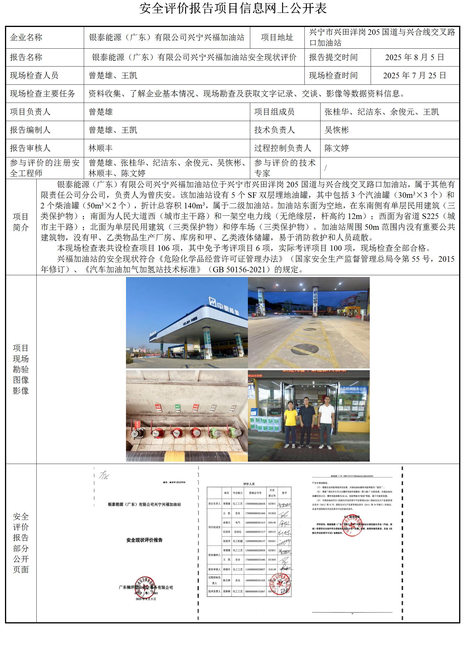 银泰能源(广东)有限公司兴宁兴福加油站安全现状评价