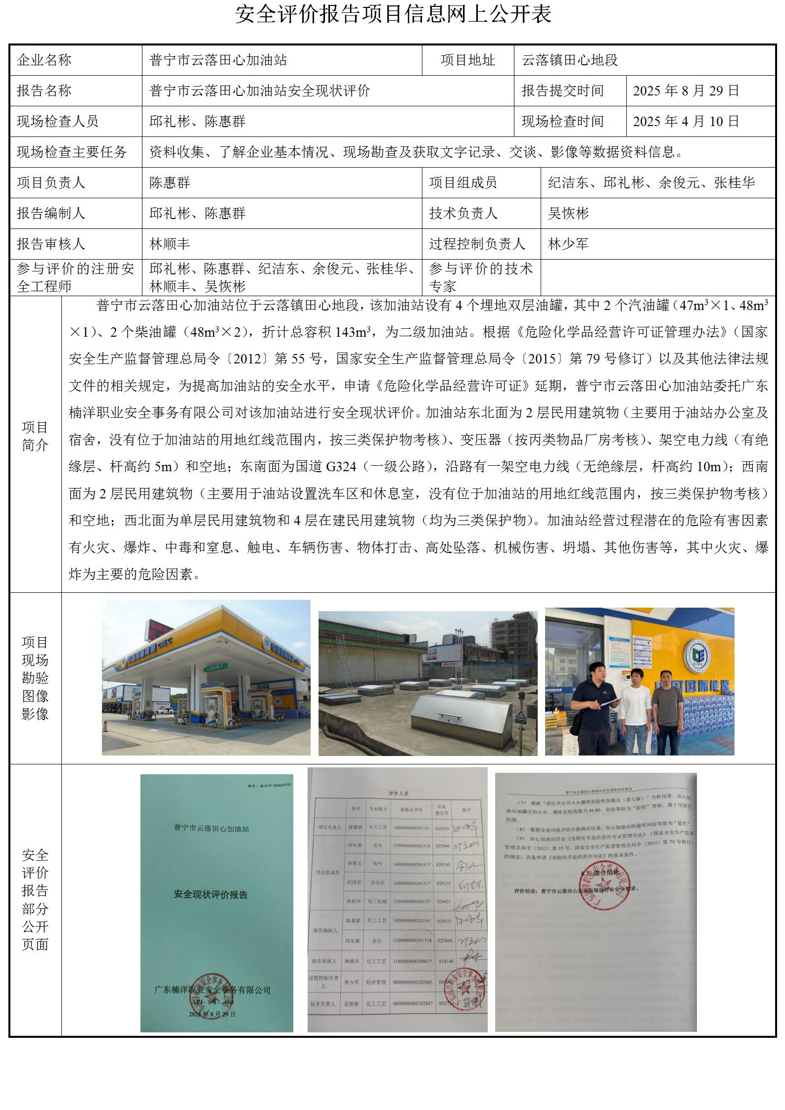 普宁市云落田心加油站安全现状评价