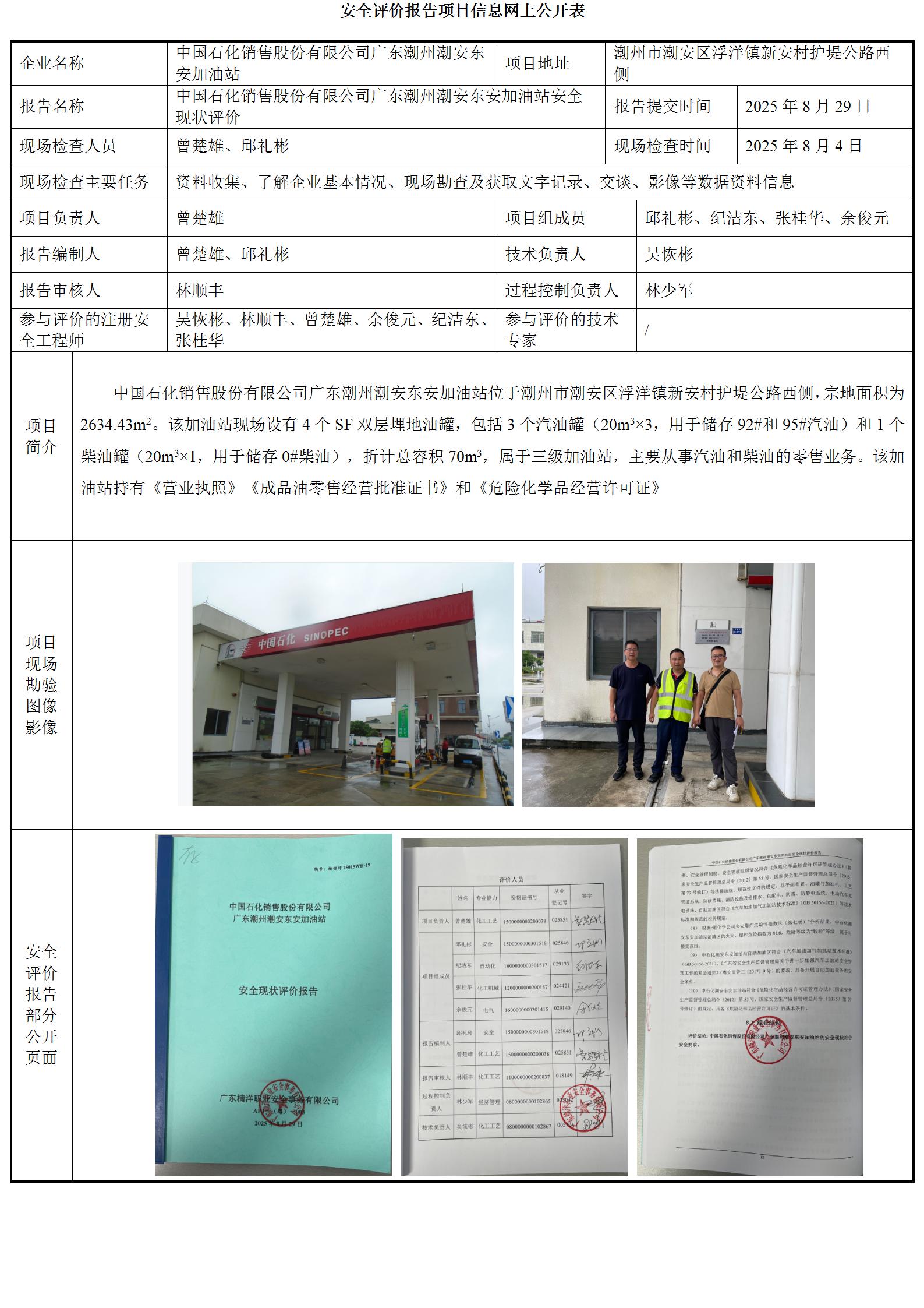 中国石化销售股份有限公司广东潮州潮安东安加油站安全现状评价