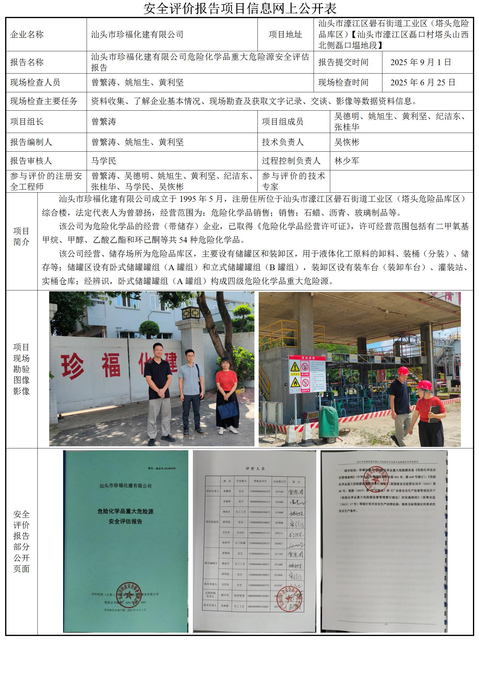 汕头市珍福化建有限公司危险化学品重大危险源安全评估
