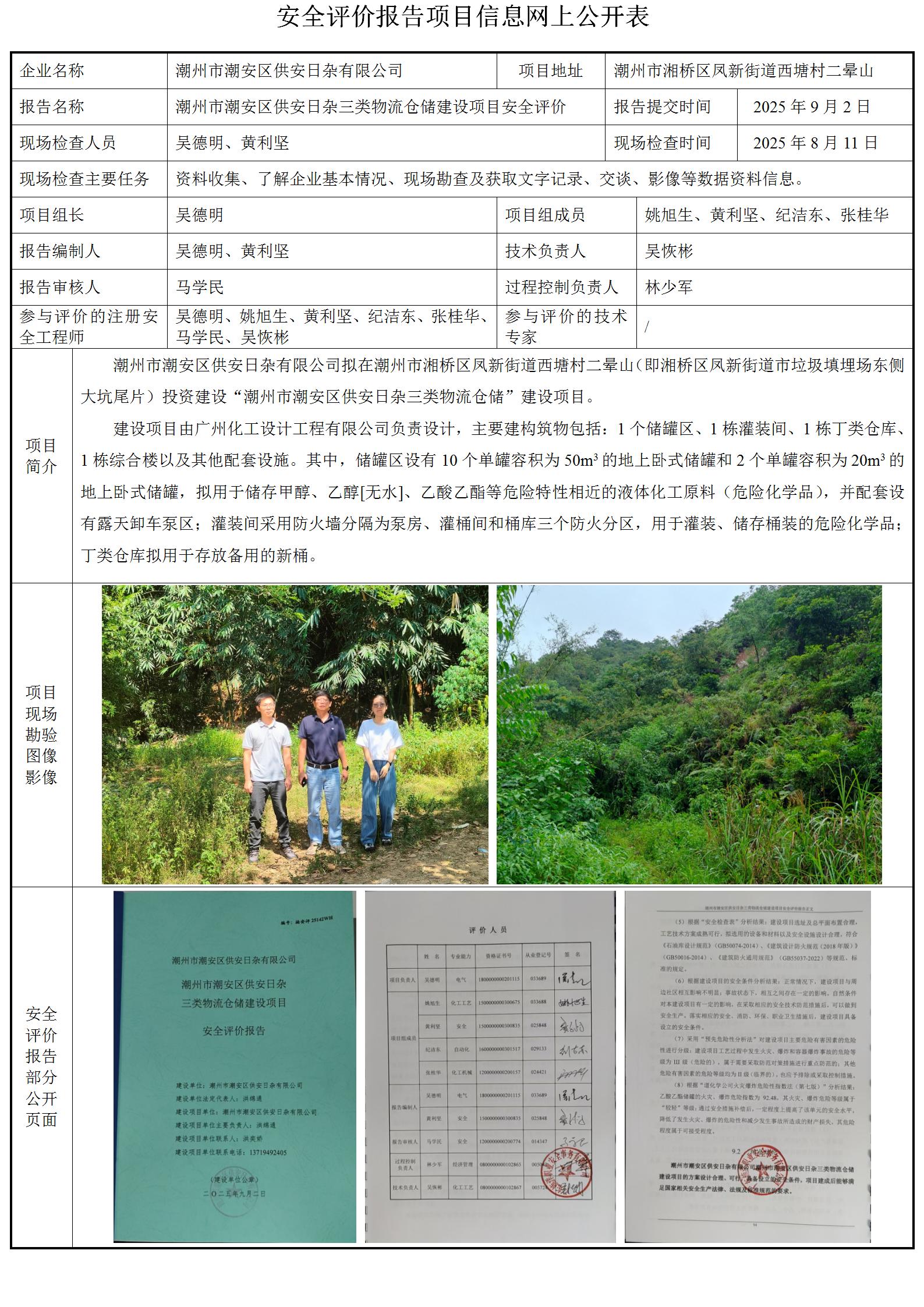 潮州市潮安区供安日杂有限公司潮州市潮安区供安日杂三类物流仓储建设项目安全评价