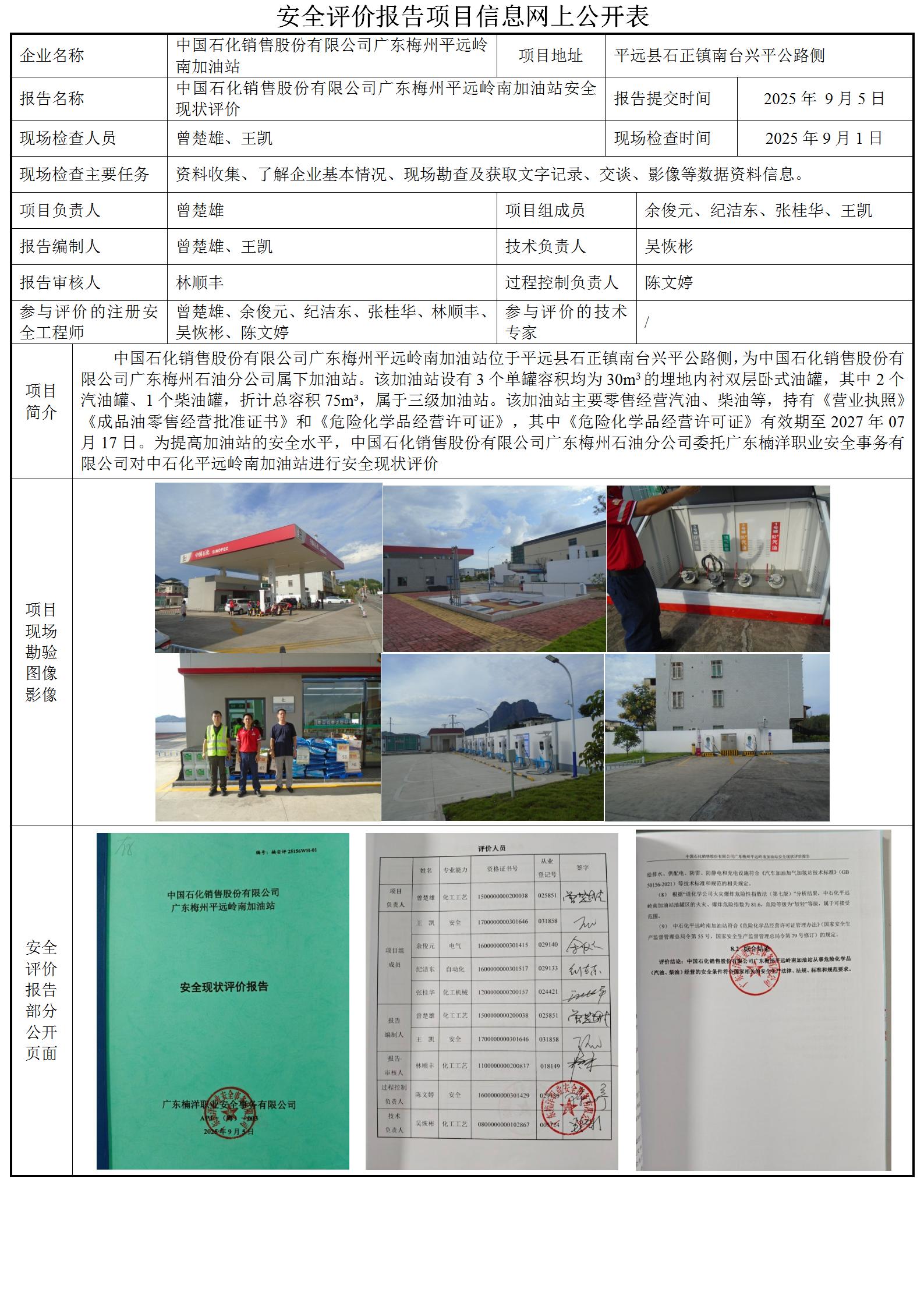 中国石化销售股份有限公司广东梅州平远岭南加油站安全现状评价