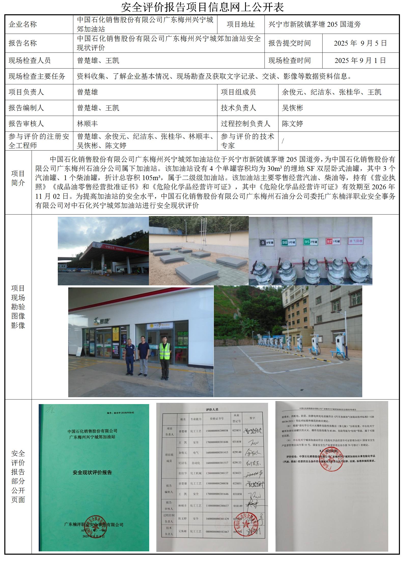 中国石化销售股份有限公司广东梅州兴宁城郊加油站安全现状评价