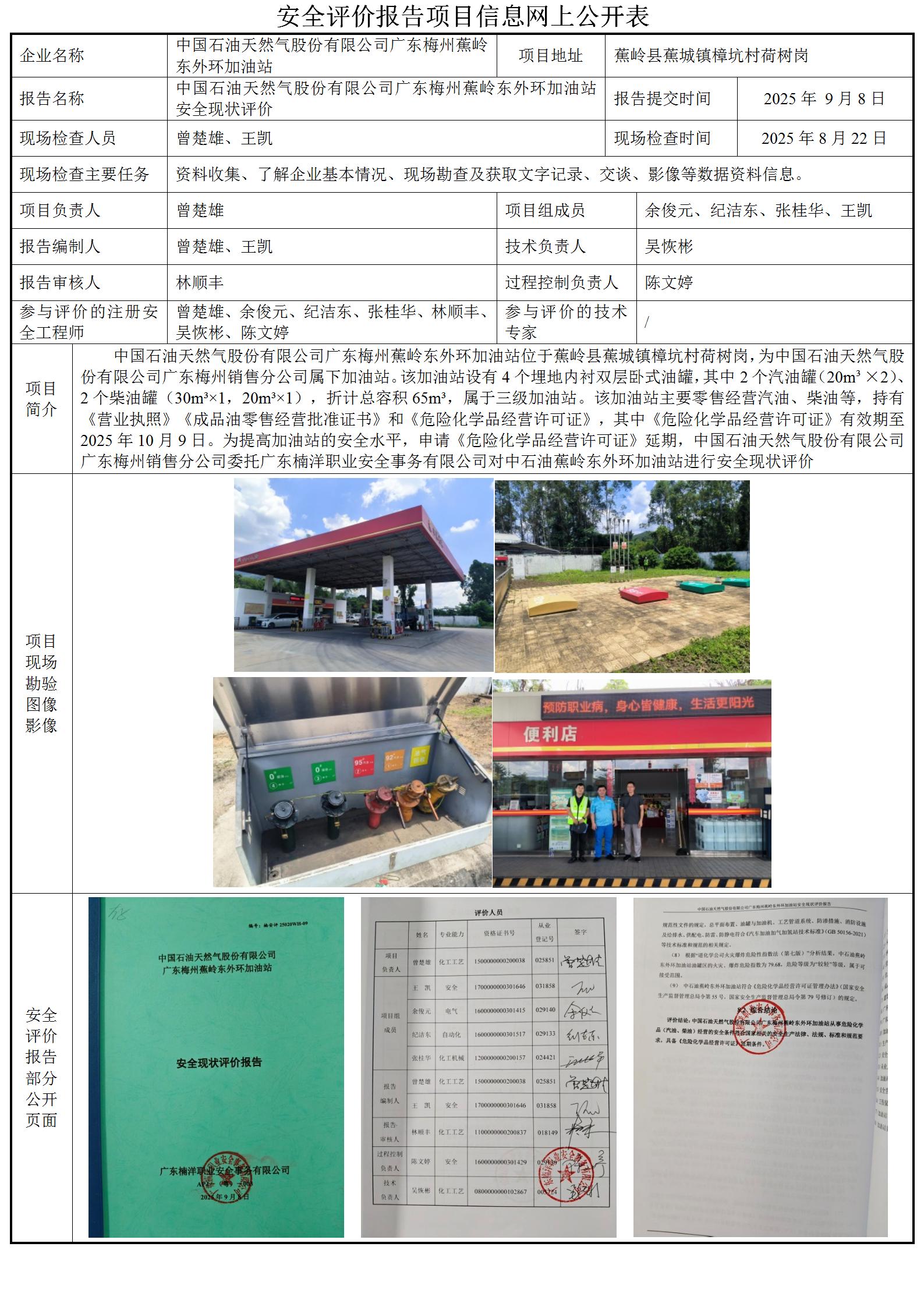 中国石油天然气股份有限公司广东梅州蕉岭东外环加油站安全现状评价