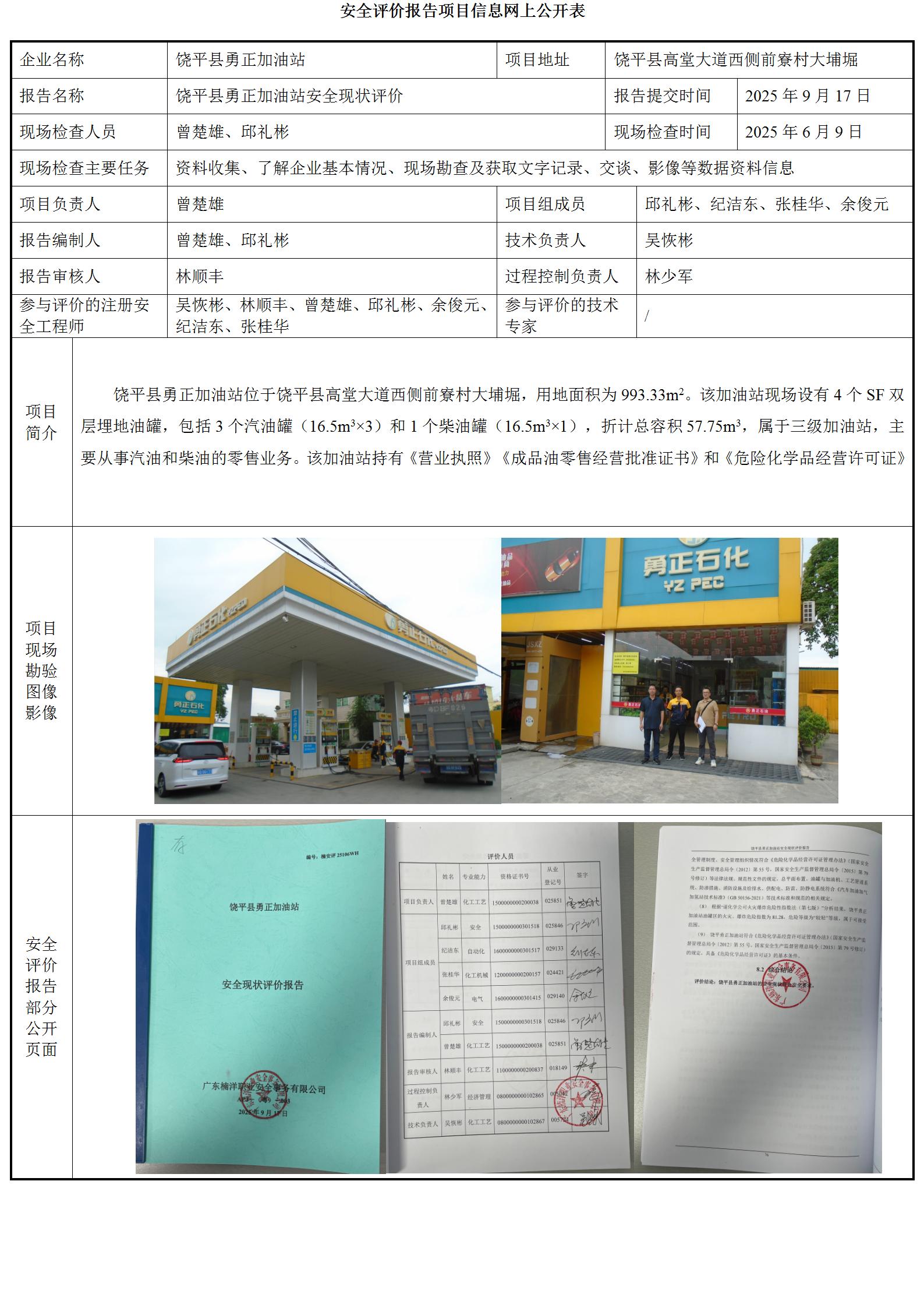 饶平县勇正加油站安全现状评价