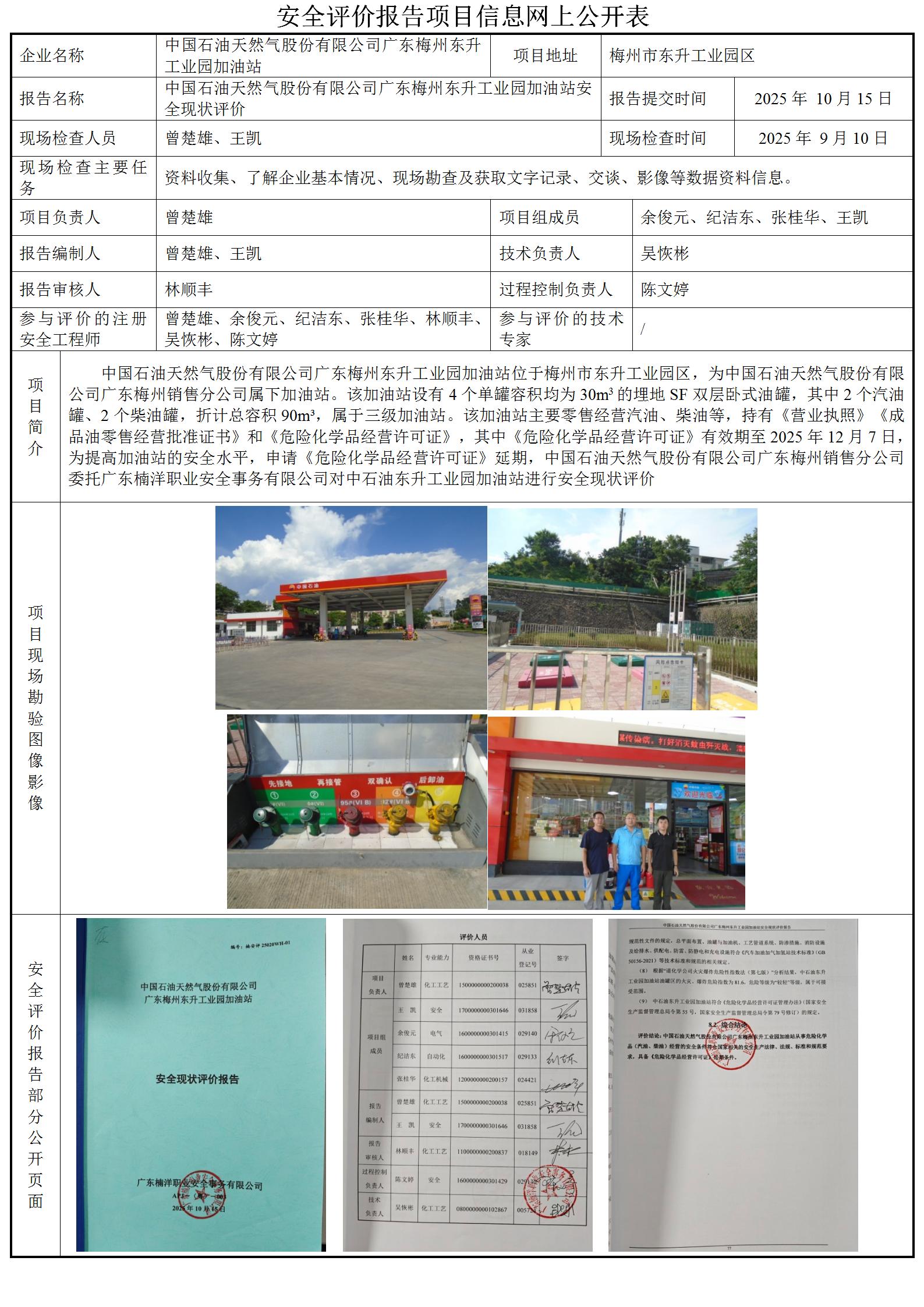 中国石油天然气股份有限公司广东梅州东升工业园加油站安全现状评价