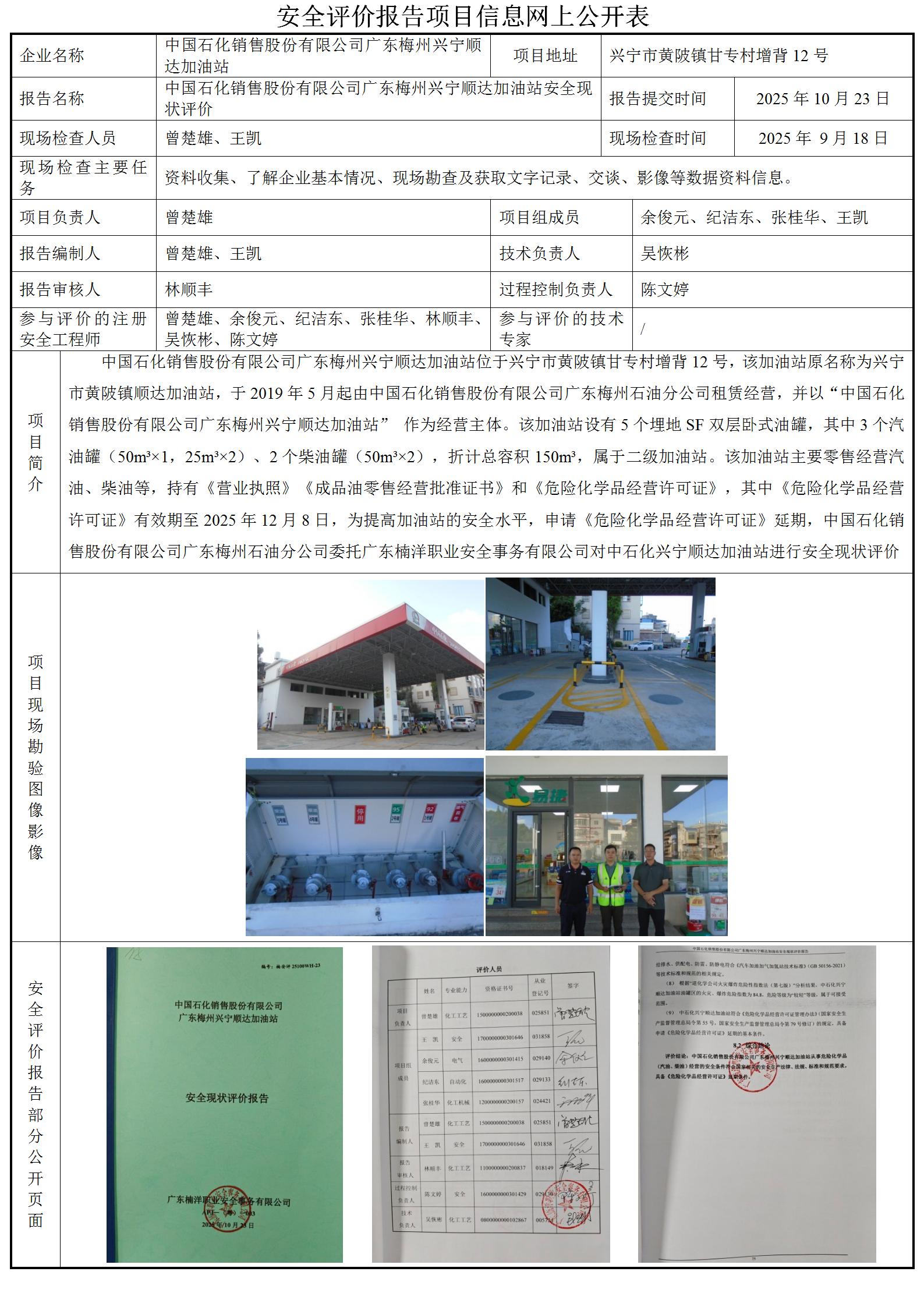 中国石化销售股份有限公司广东梅州兴宁顺达加油站安全现状评价