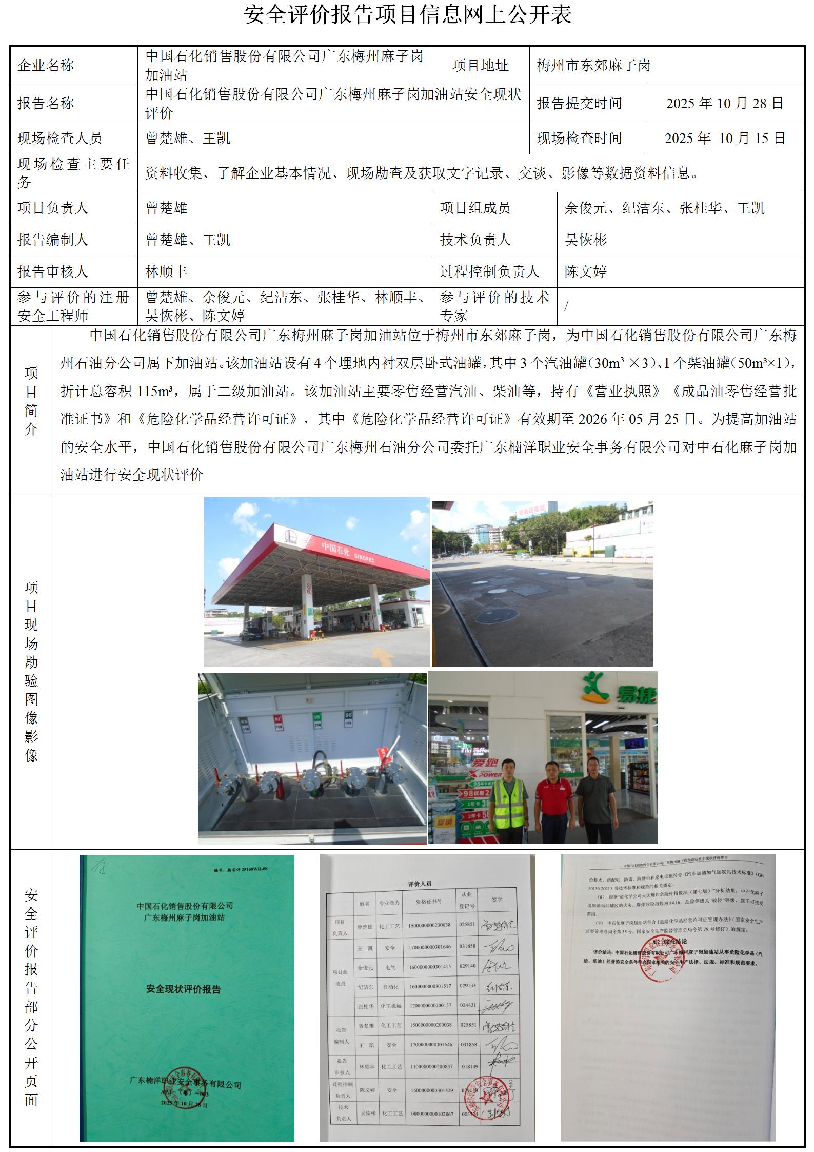 中国石化销售股份有限公司广东梅州麻子岗加油站安全现状评价