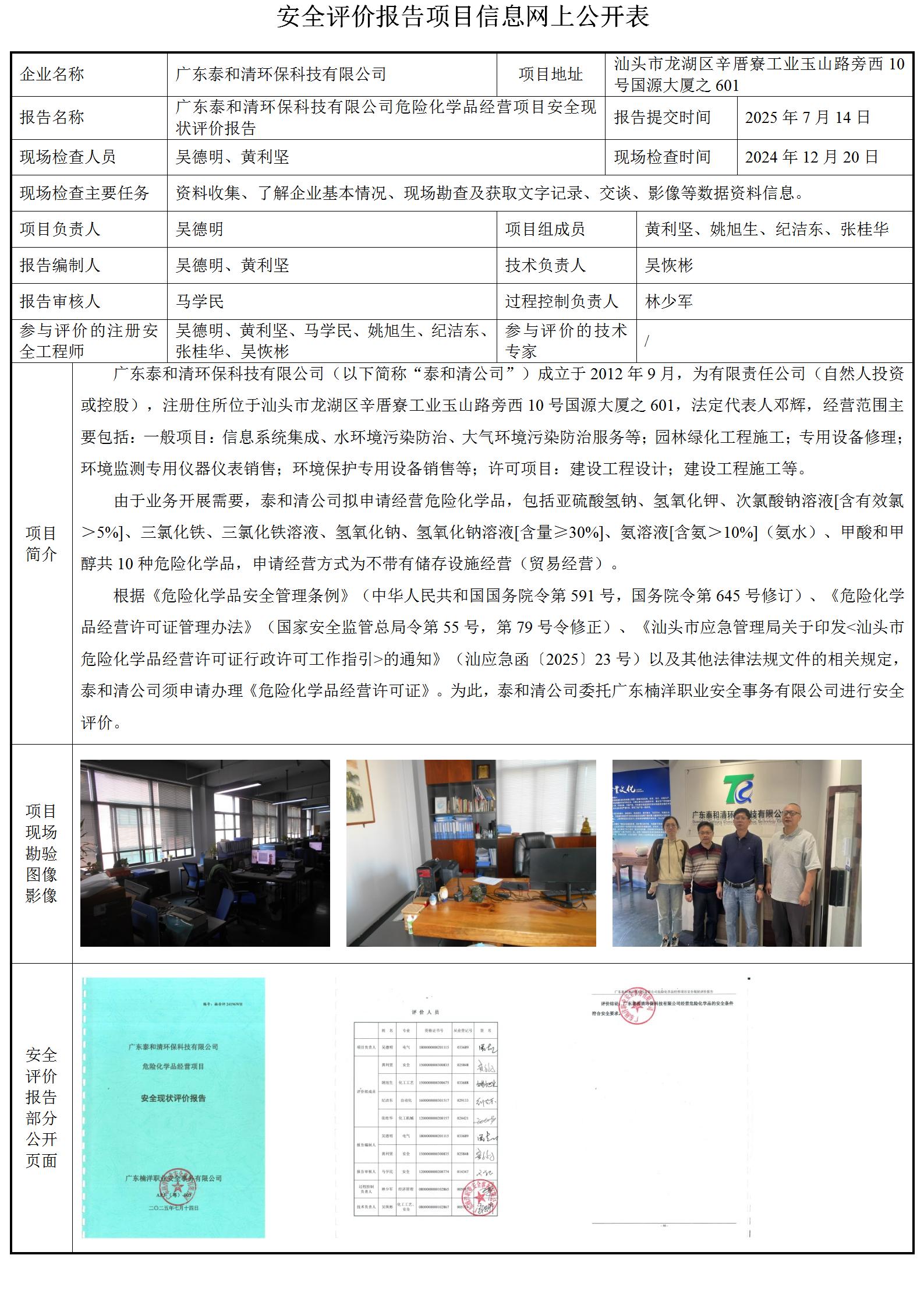 广东泰和清环保科技有限公司危险化学品经营项目安全现状评价
