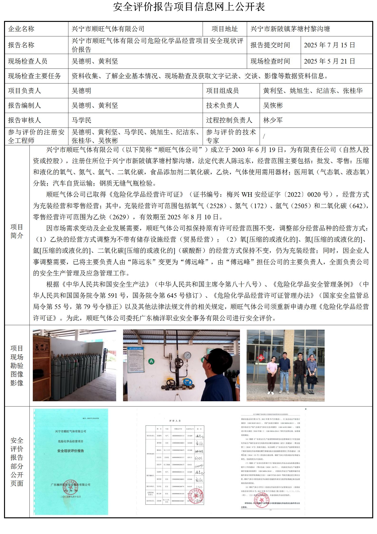 兴宁市顺旺气体有限公司危险化学品经营项目安全现状评价