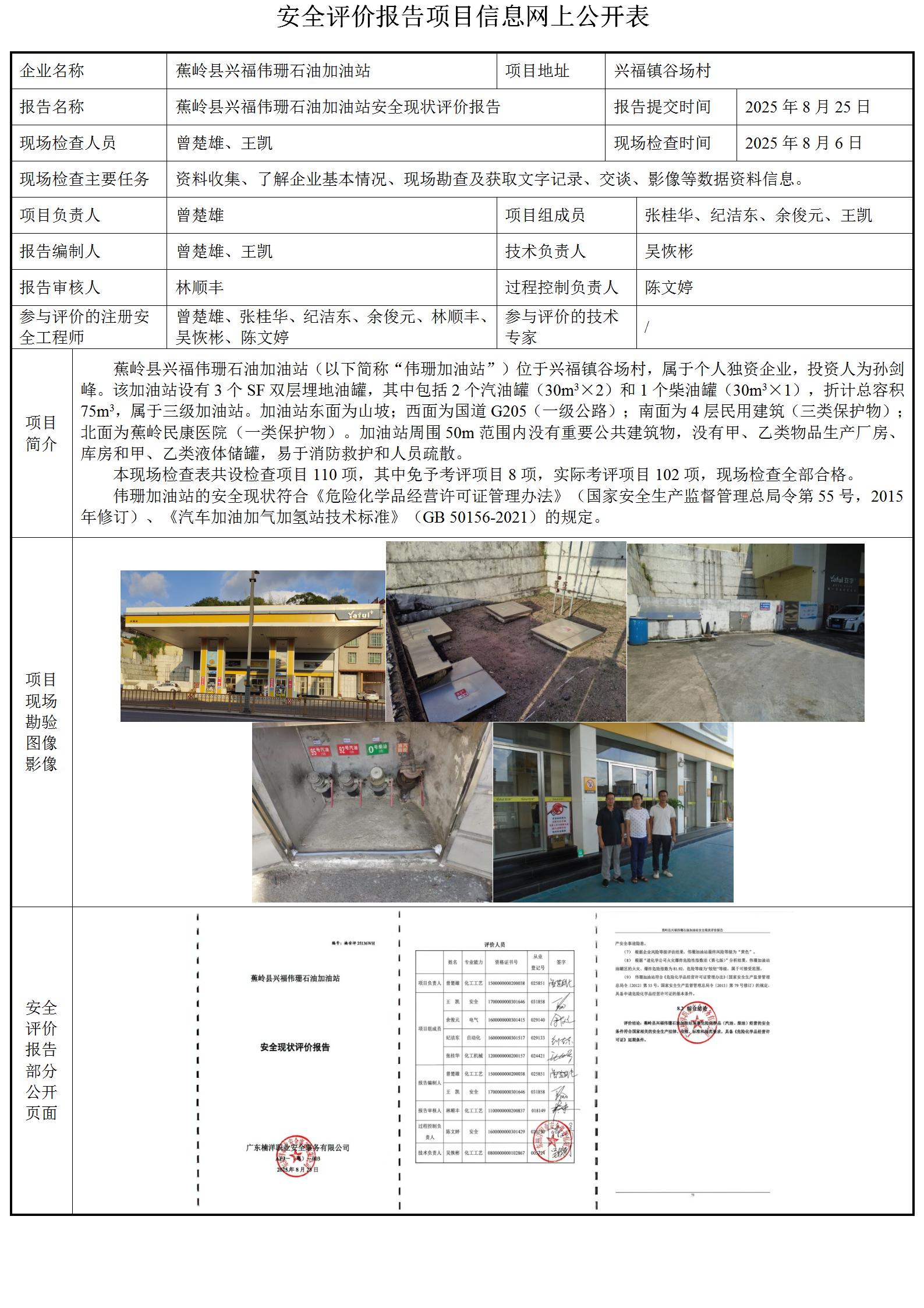 蕉岭县兴福伟珊石油加油站安全现状评价