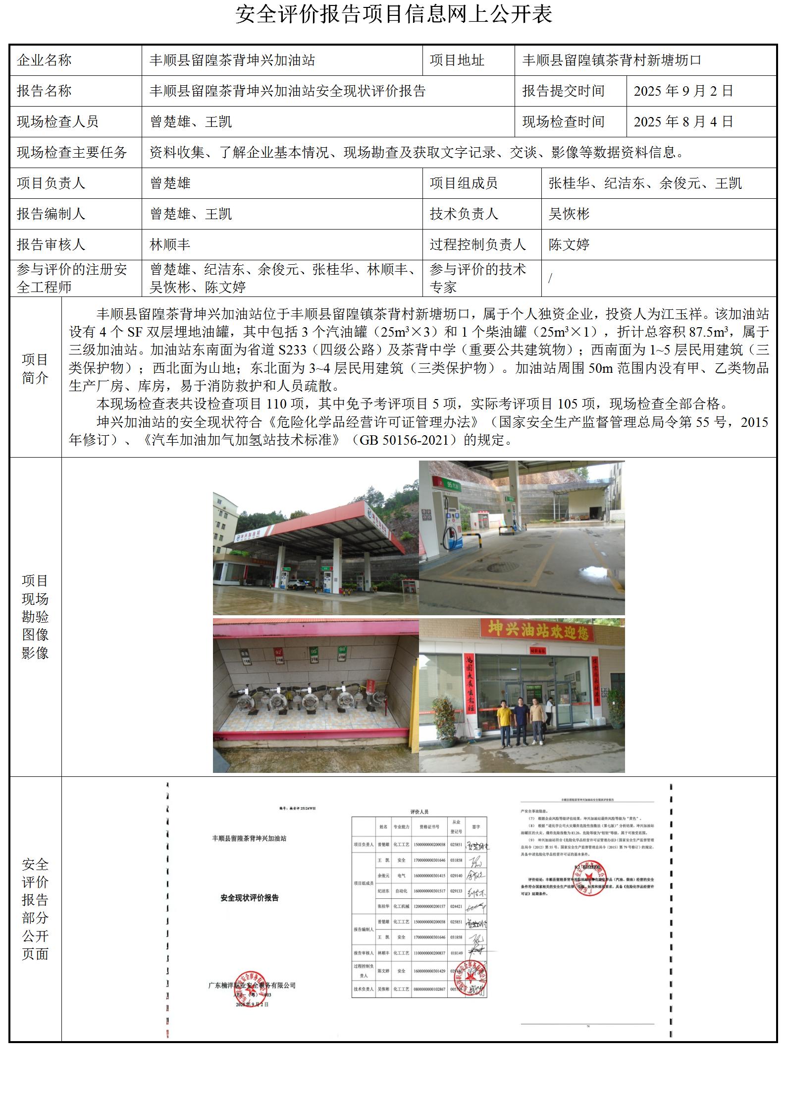 丰顺县留隍茶背坤兴加油站安全现状评价