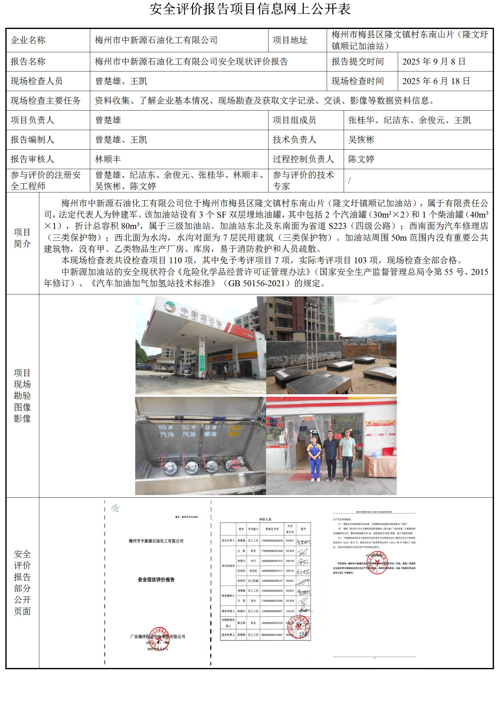 梅州市中新源石油化工有限公司安全现状评价