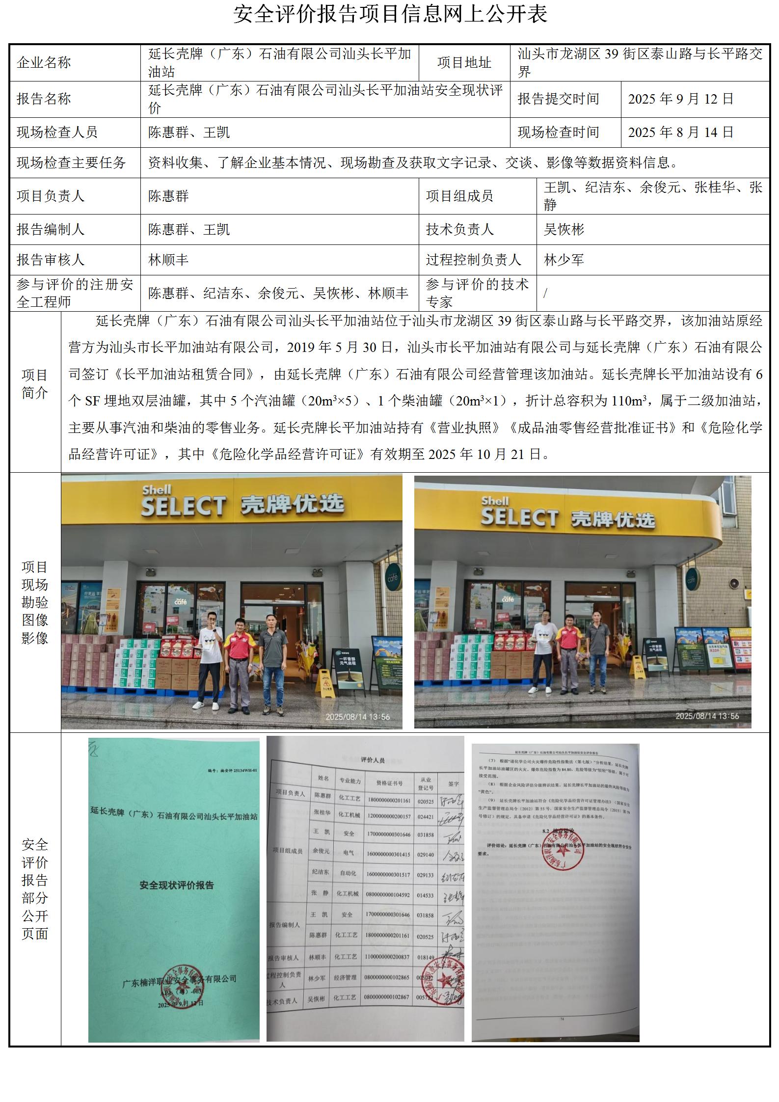 延长壳牌(广东)石油有限公司汕头长平加油站安全现状评价