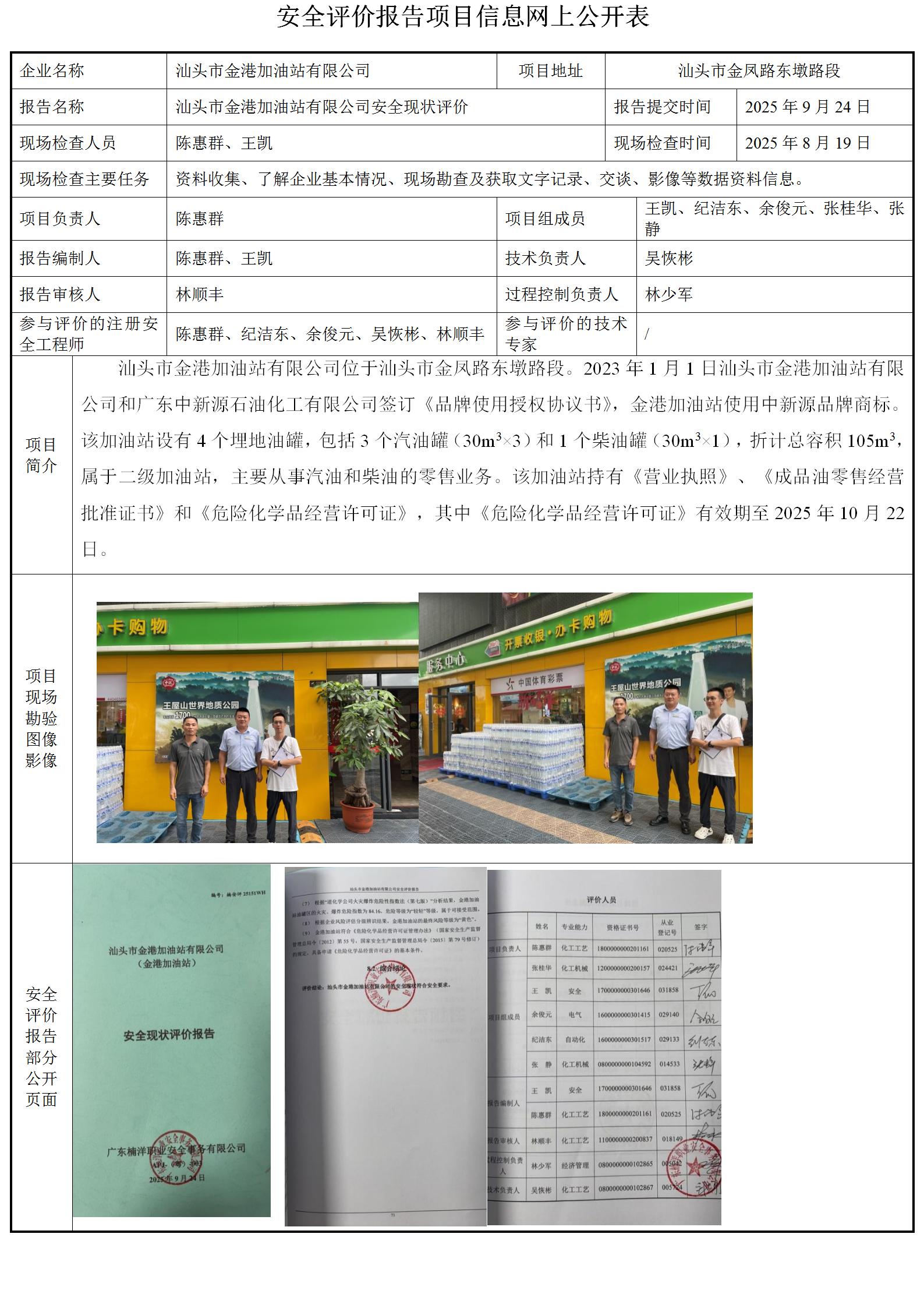 汕头市金港加油站有限公司(金港加油站)安全现状评价