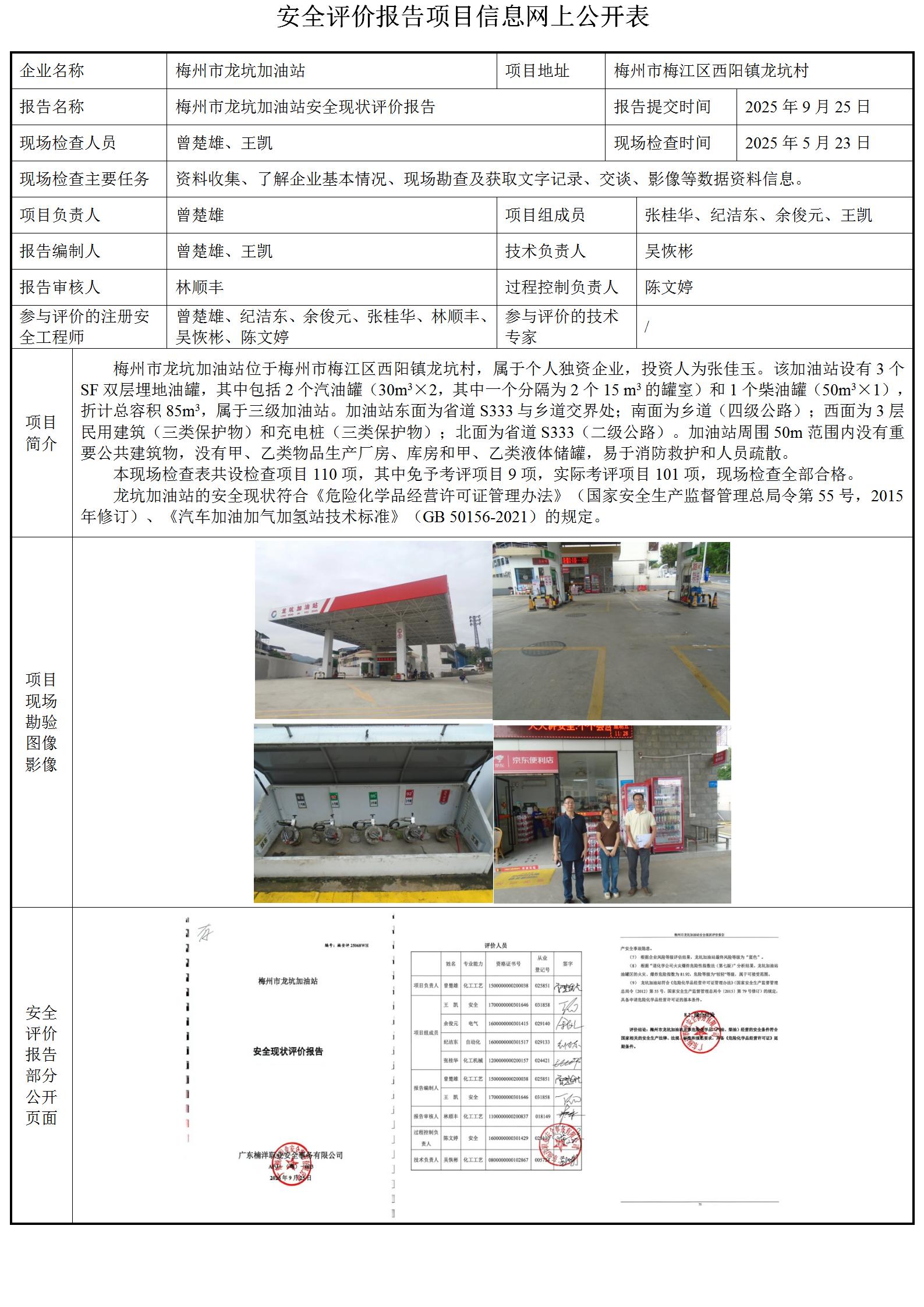 梅州市龙坑加油站安全现状评价